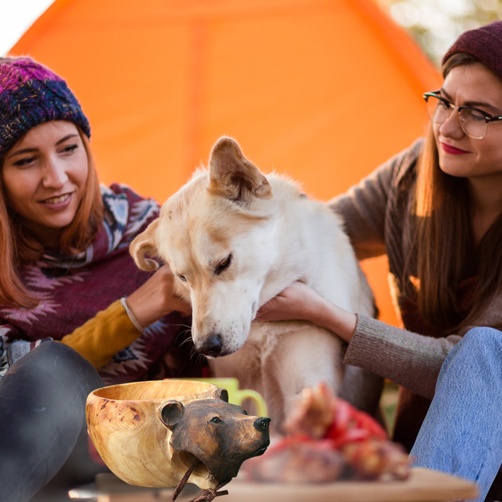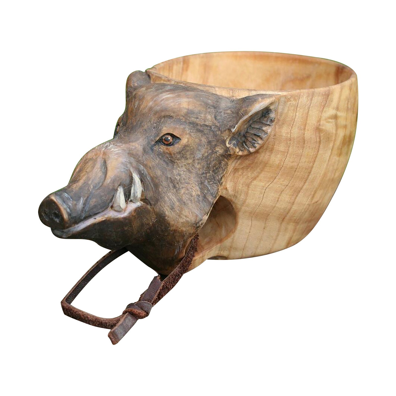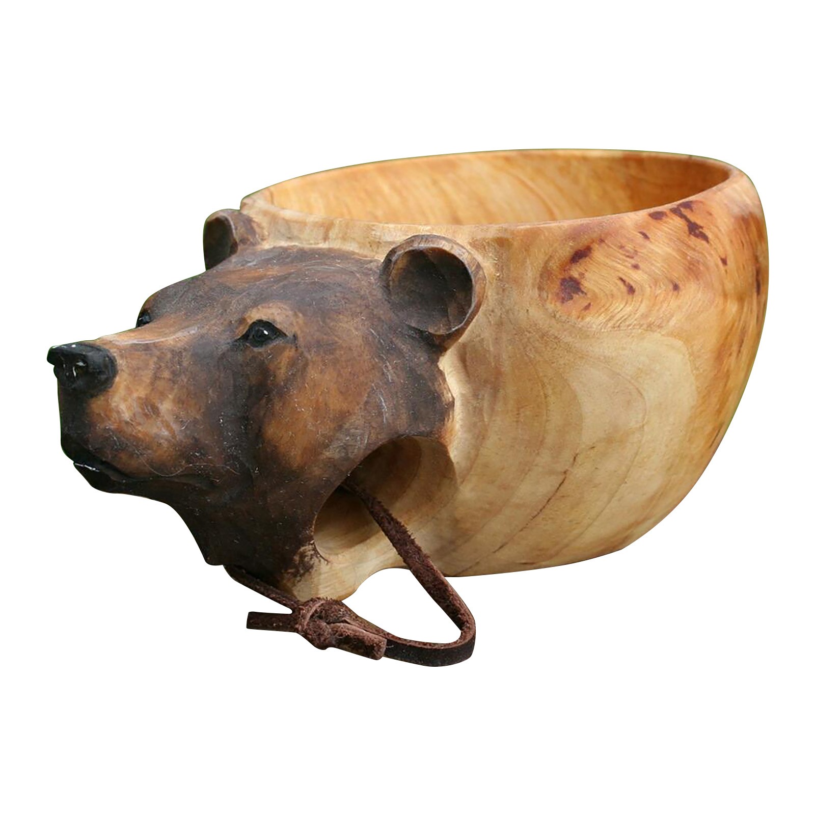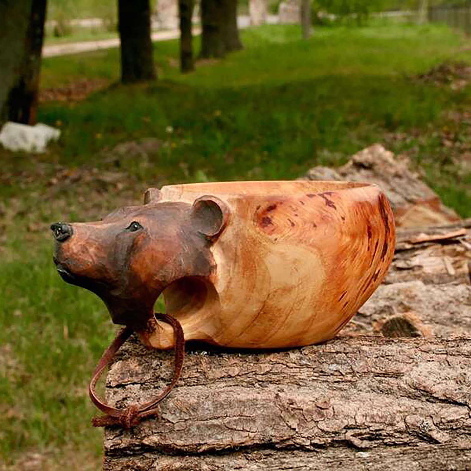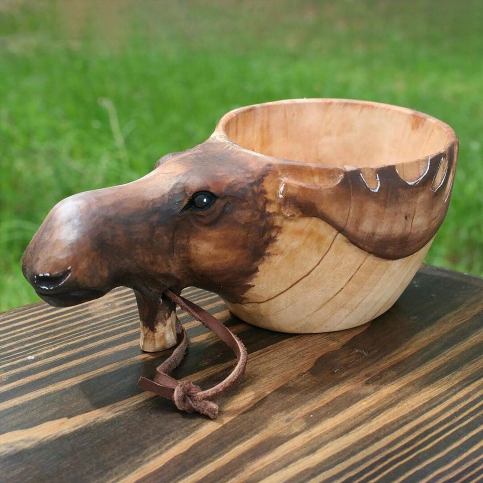 Ручная резная деревянная кружка с изображением головы животных для путешественников на открытом воздухе кемпинга