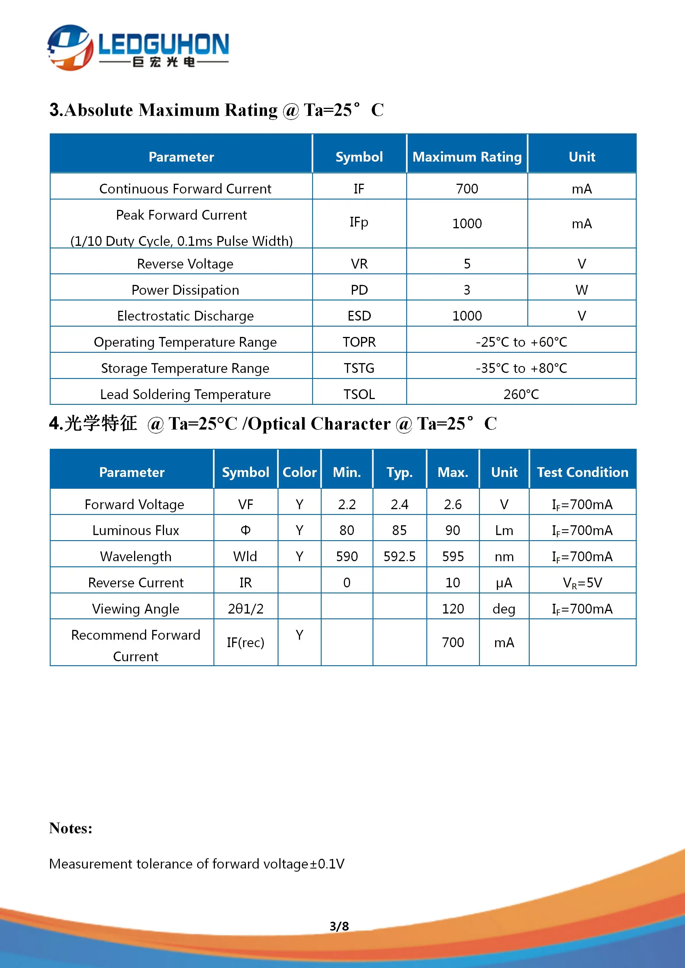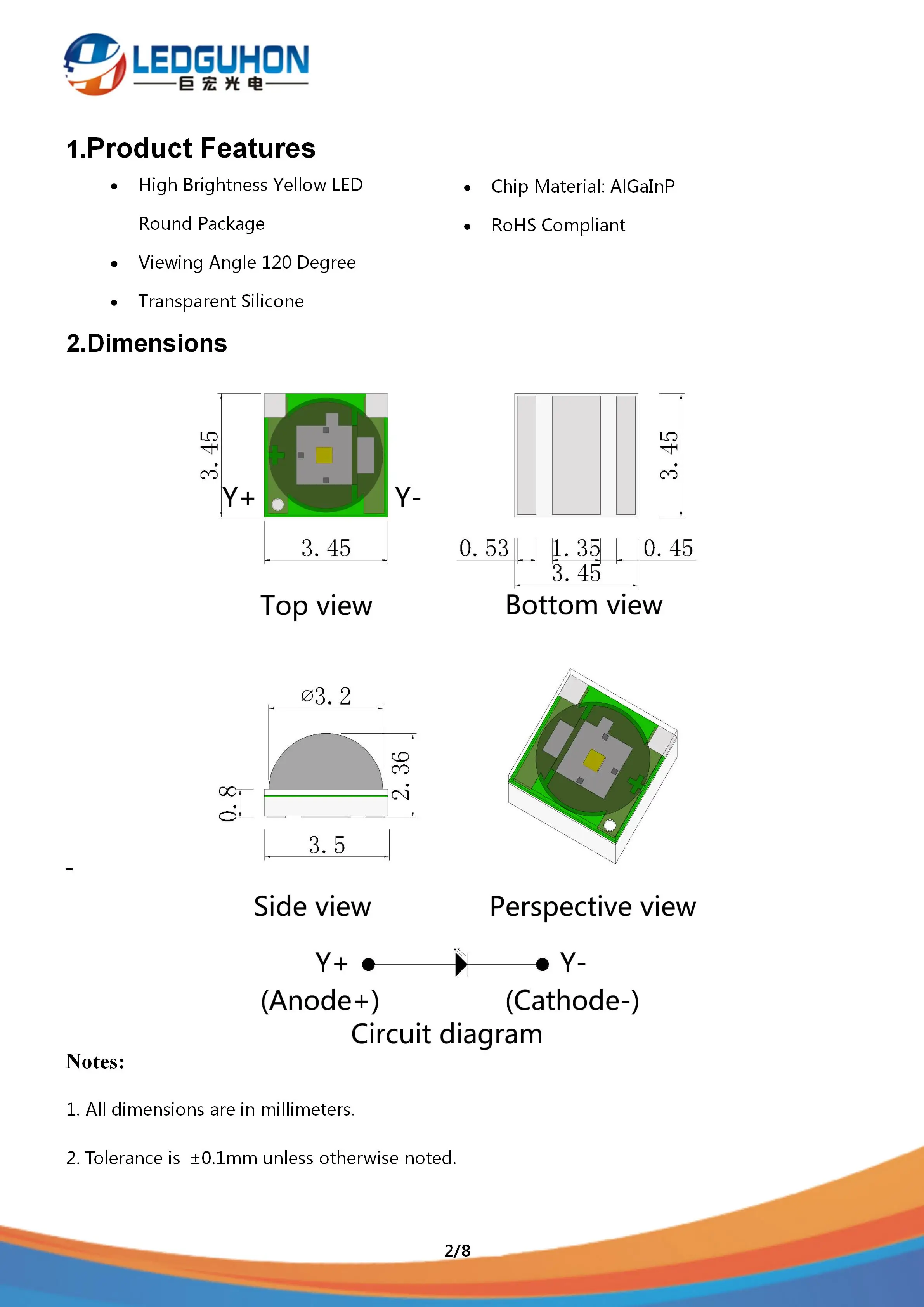 Сделать керамическую подложку 3535 smd 590 595nm желтый 3w высокой мощности СИД/smd 3535 высокой мощности желтый 3w СИД |