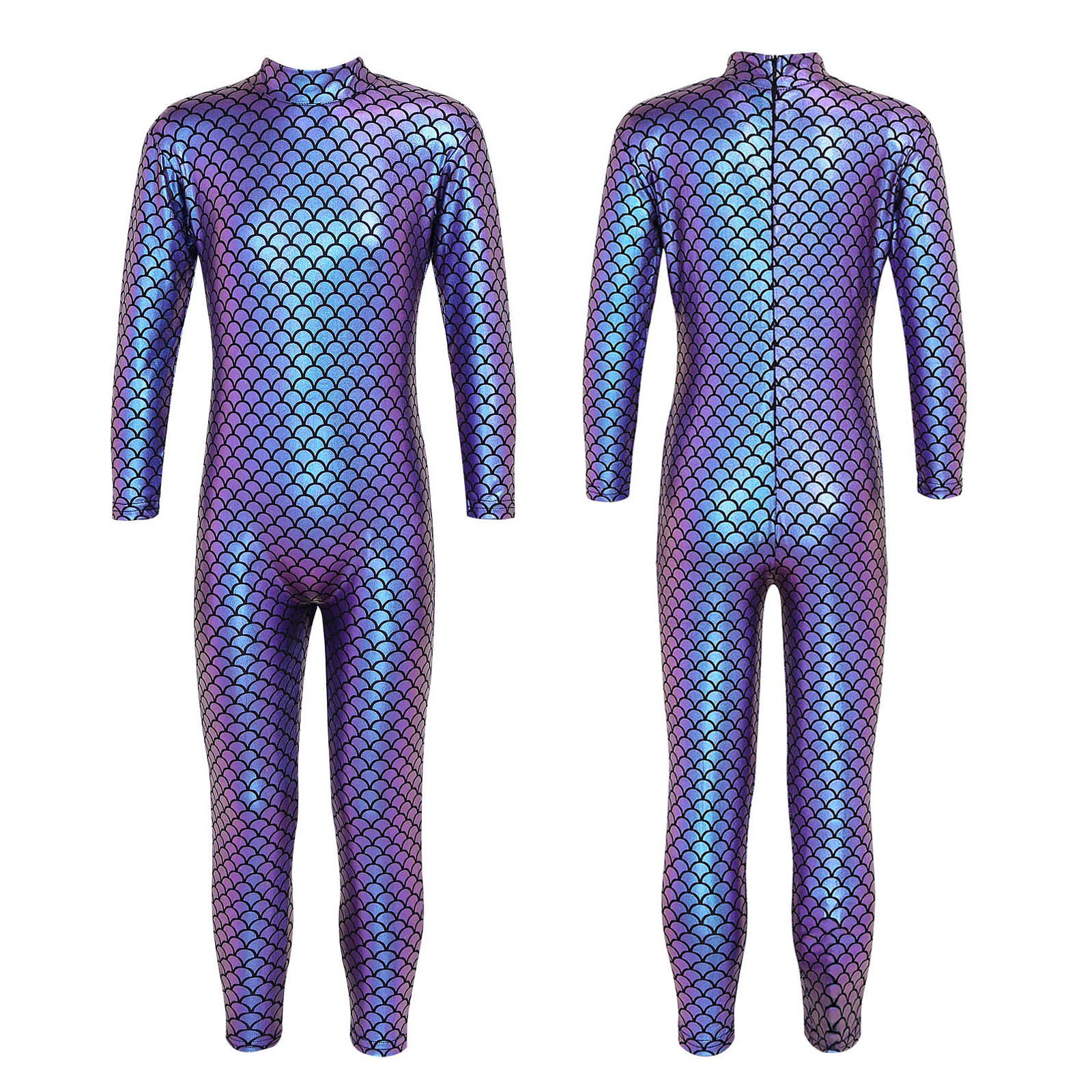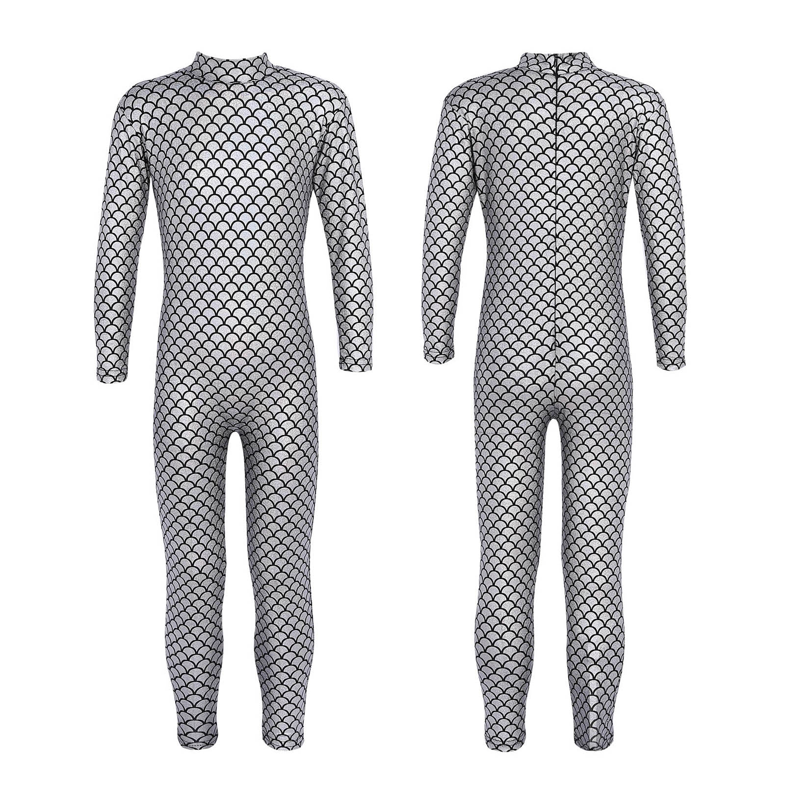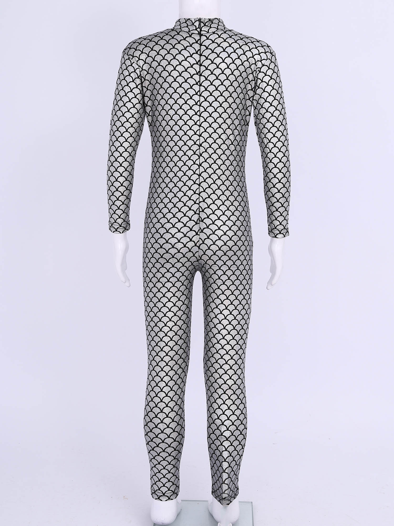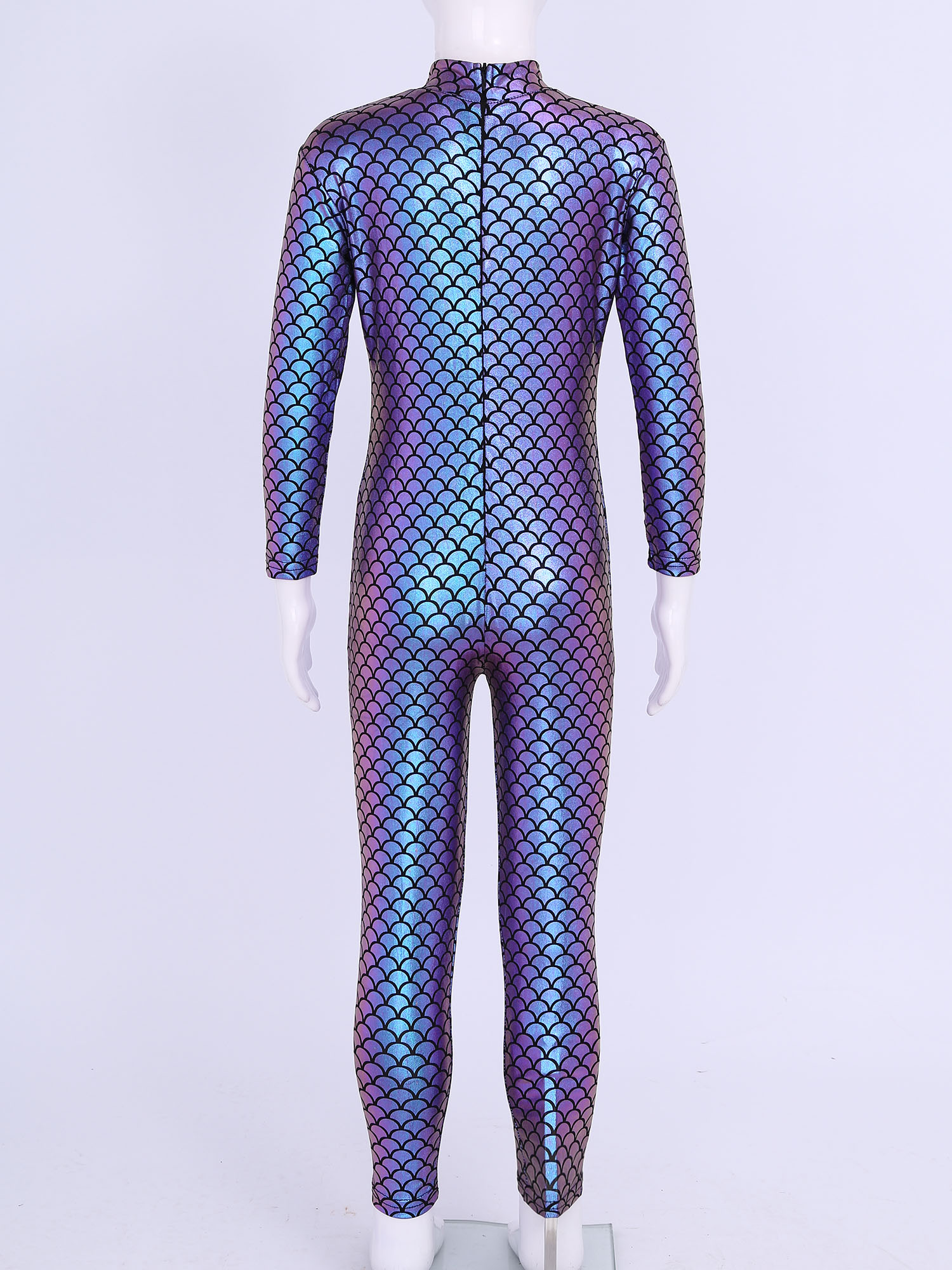 Детский костюм унисекс со стоячим воротником и длинными рукавами; Блестящие штаны с принтом рыбьей чешуи; Боди