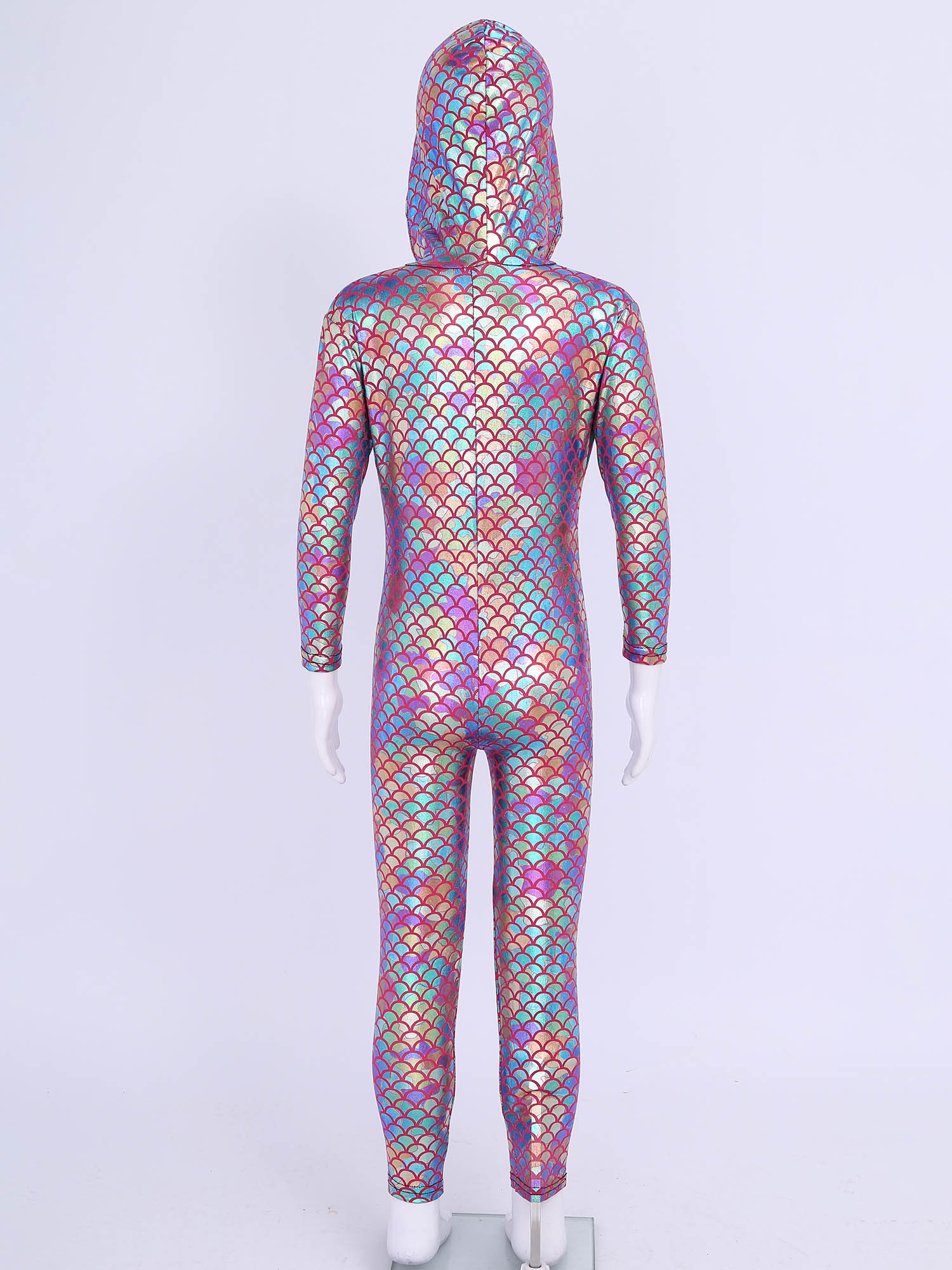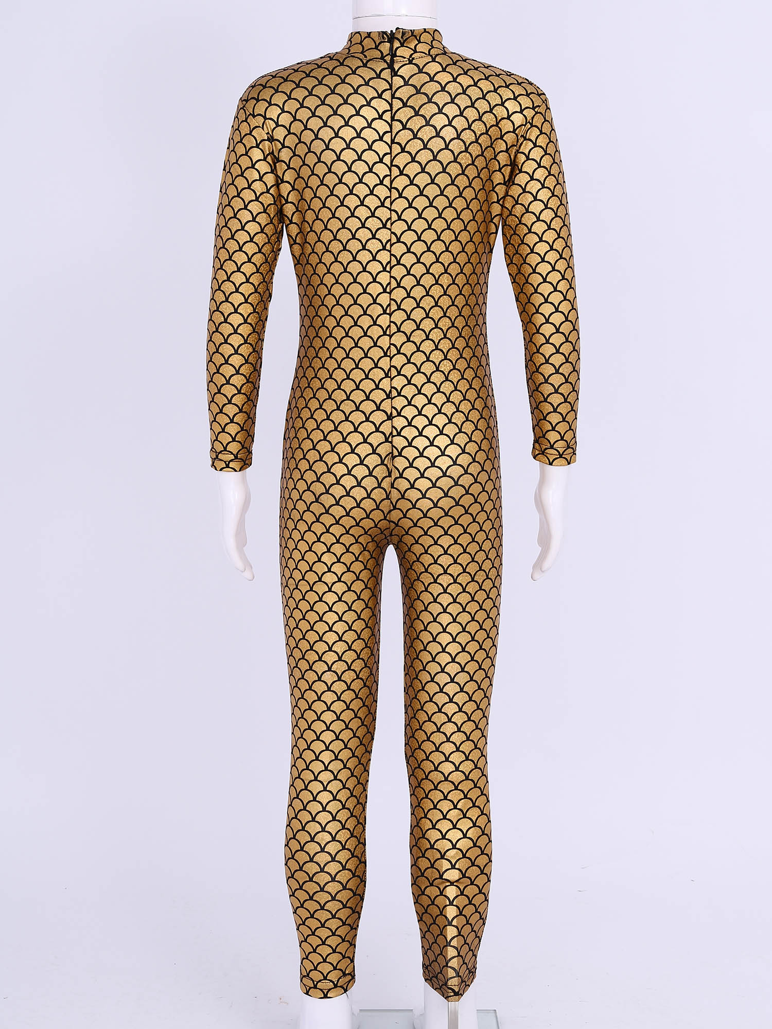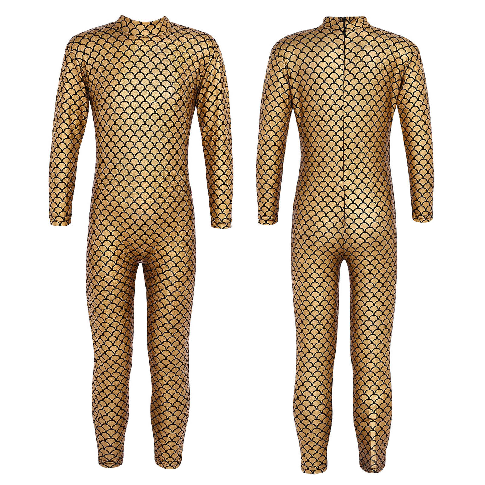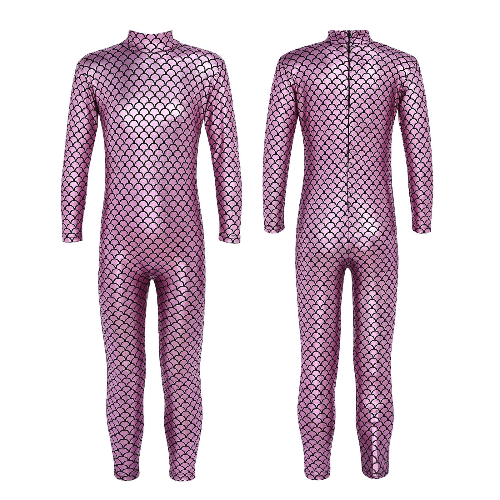 Детский костюм унисекс со стоячим воротником и длинными рукавами; Блестящие штаны с принтом рыбьей чешуи; Боди