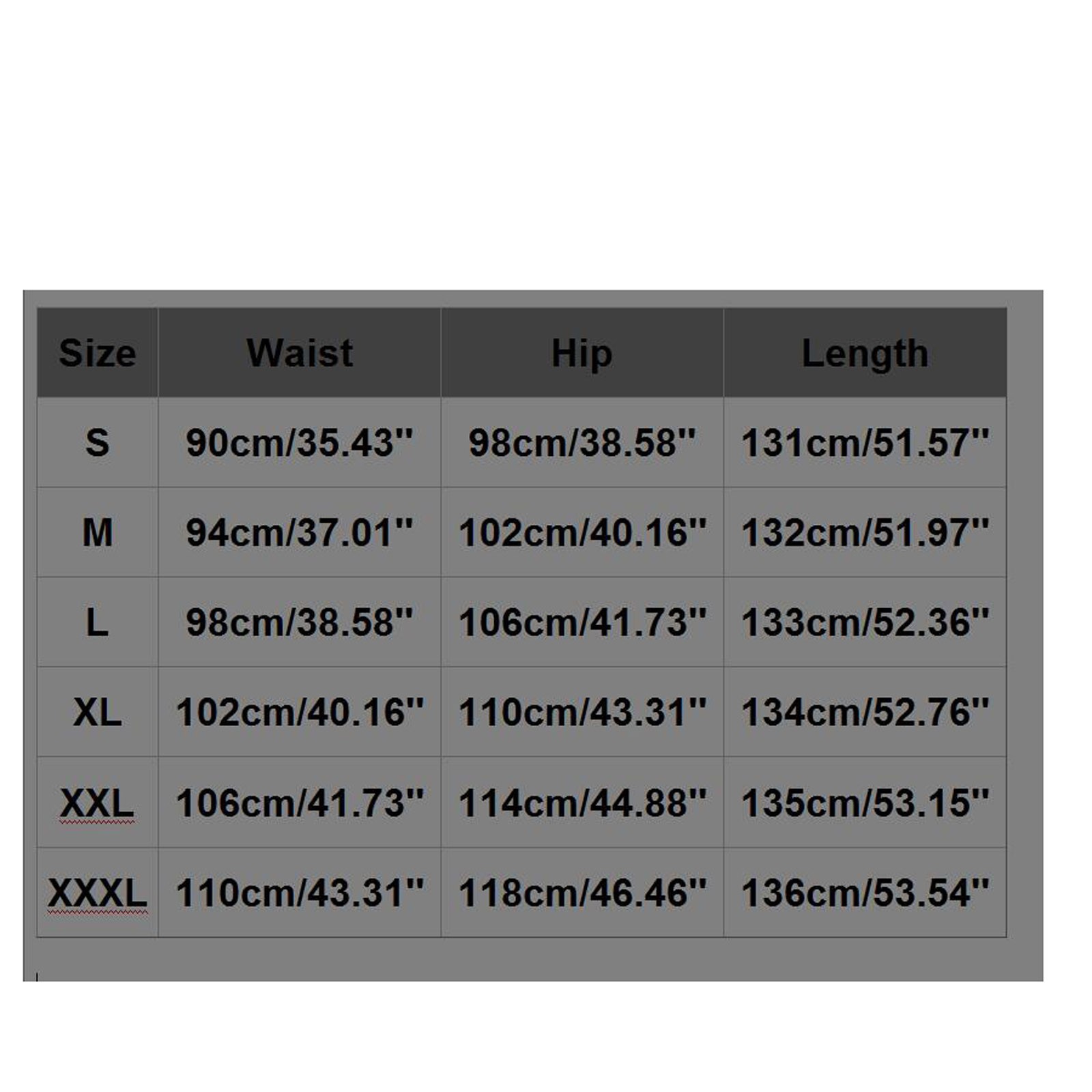 XXL | 106 см/41,73'' | 114 см/44,88'' | 135 см/53,15'' |