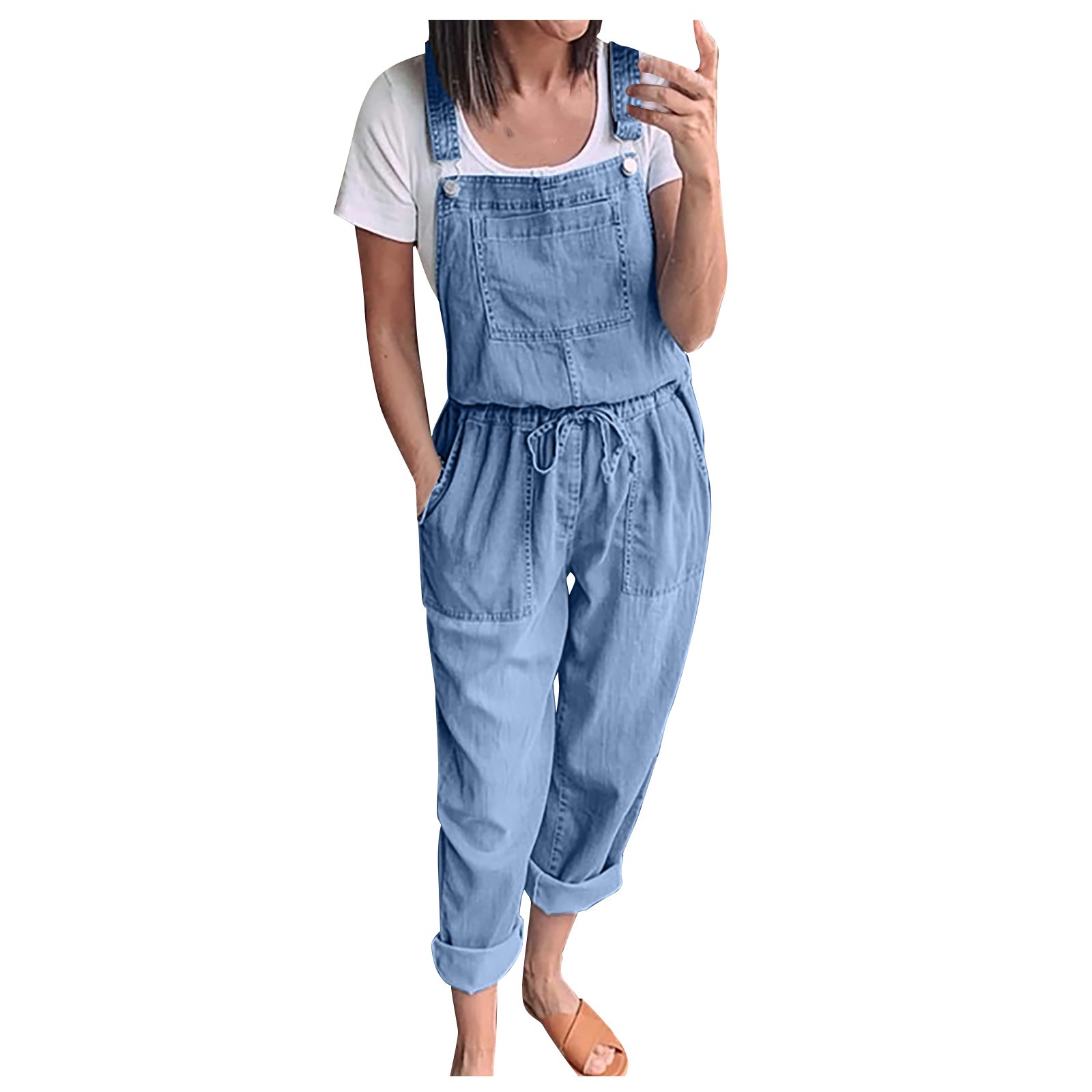 Женский джинсовый комбинезон без рукавов с высокой талией, широкие комбинезоны, пляжный комбинезон, джинсовые подтяжки