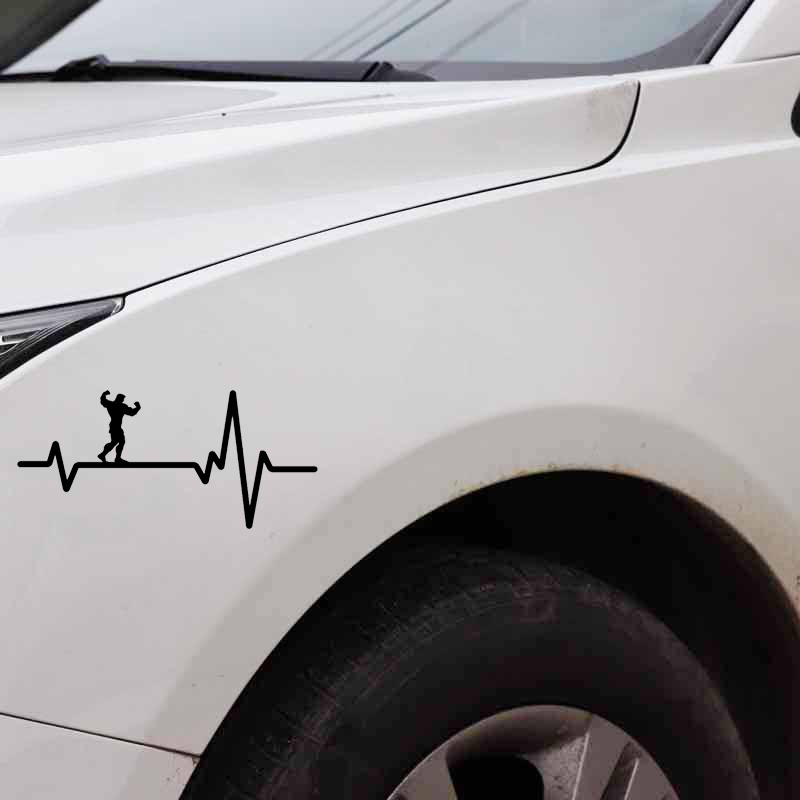 1 шт. 16,5 см * 7,6 см автомобиля Стикеры изгибать Бодибилдинг Фитнес парень сердцебиение черный винил/серебристого цвета для Subaru Стикеры s