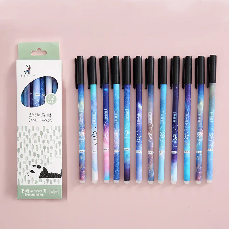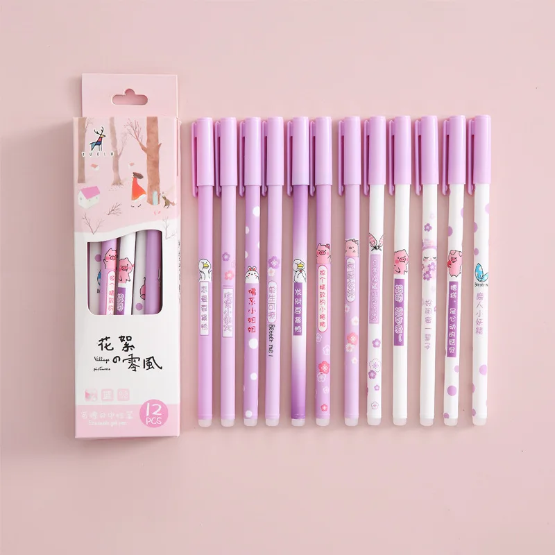 12 шт./набор, цветущей вишни стираемая ручка 0,5 мм синие чернила набор гелевых ручек, милые школьные пишущие инструменты гелевая ручка ручки для канцелярских товаров
