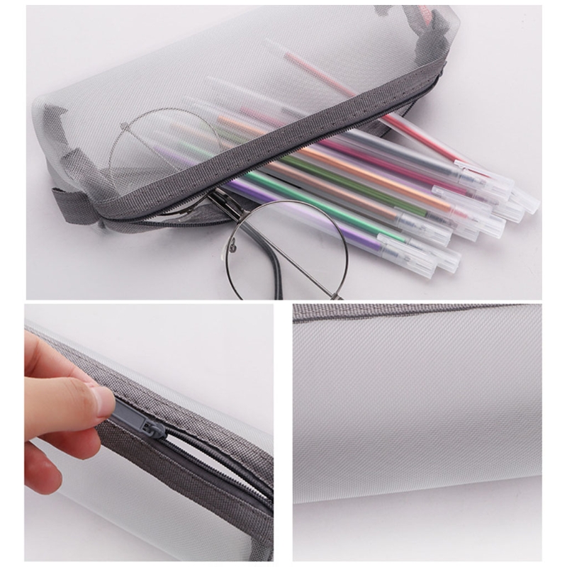 Уникальный дизайн. Креативный прозрачный сетчатый карманный дизайн, легкий доступ и просмотр. Простая и высокая эффективность. Гладкая застежка-молния, легко организовывает различные вещи, такие как ручки, цветные карандаши, маркеры, ленты, линейки, ножницы, точилка для карандашей, usb-шнуры, скрепки, макияж и т. д.