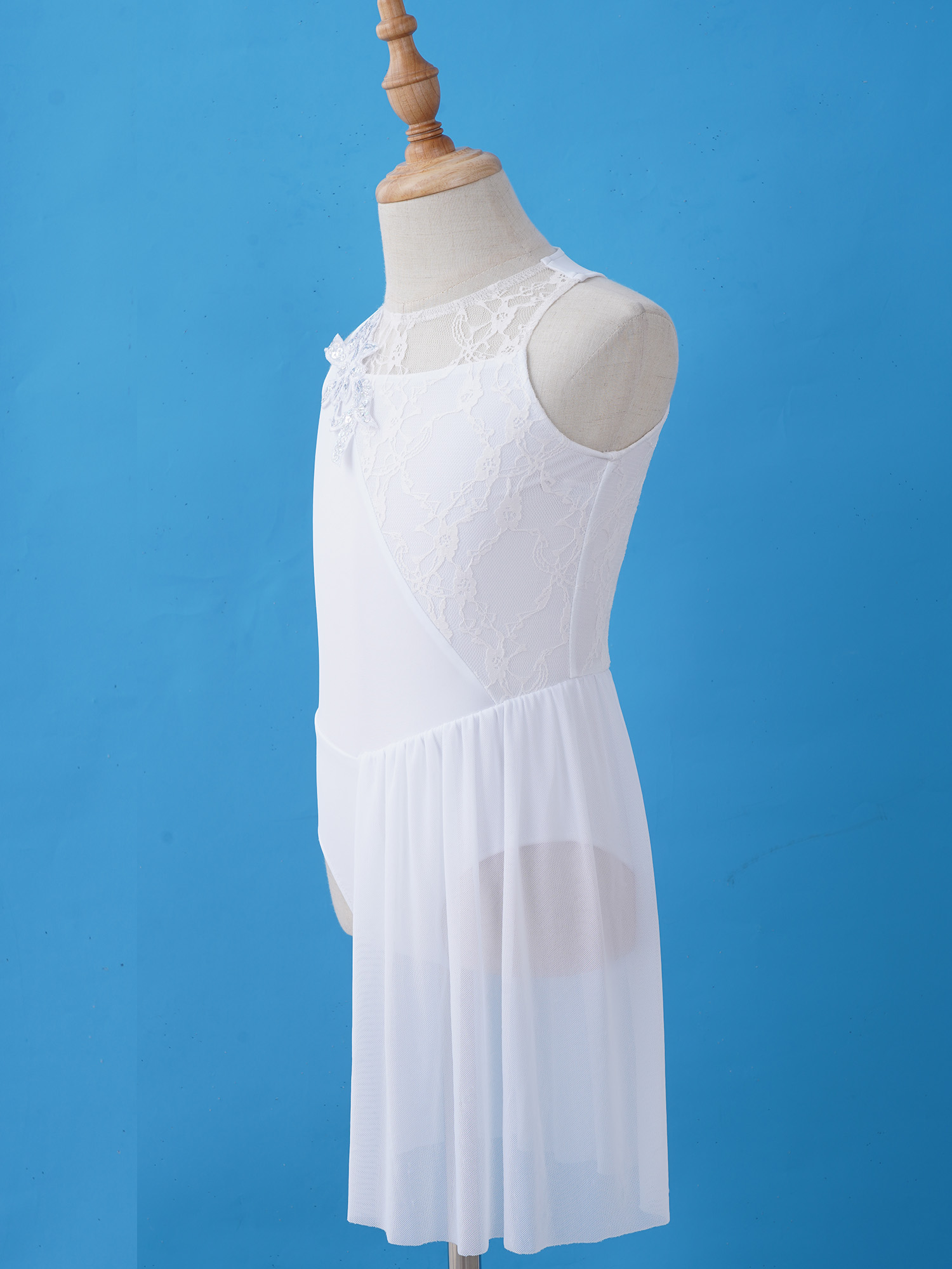 Стильное платье для танцев для девочек; Платье без рукавов с круглым вырезом и пайетками в форме цветка; Кружевная сетчатая танцевальная одежда в стиле пэчворк; #6-14