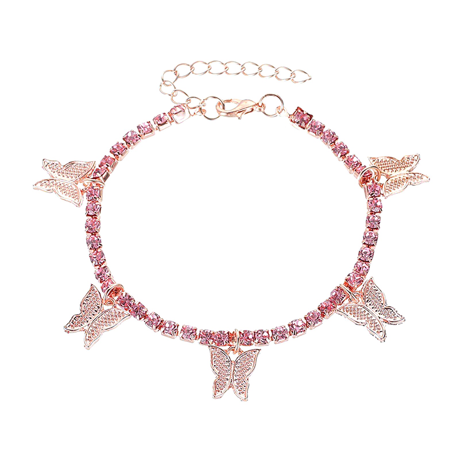 Модные блестящие стразы с бабочками в форме лодыжки, женские Украшения для ног