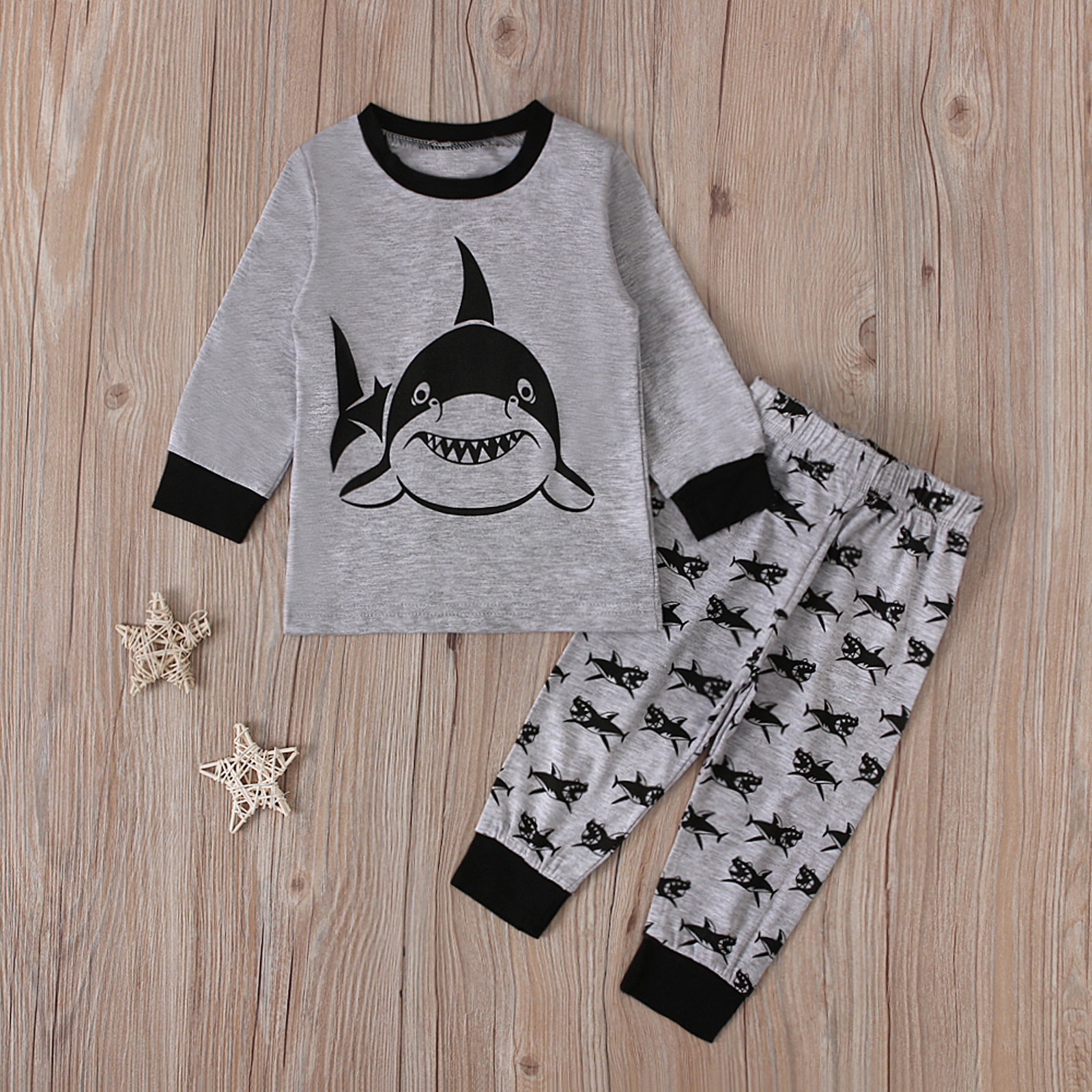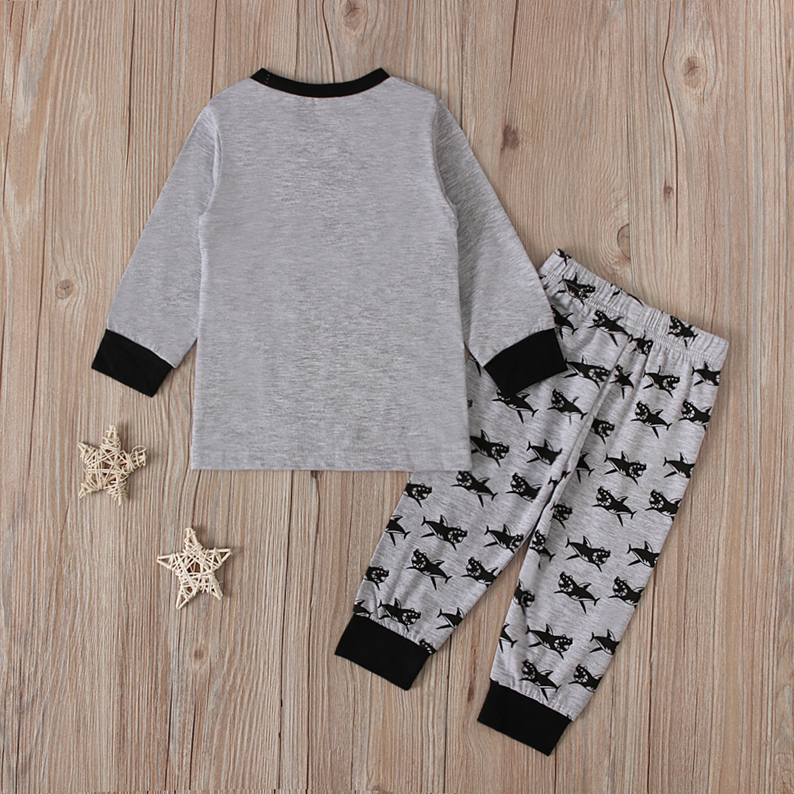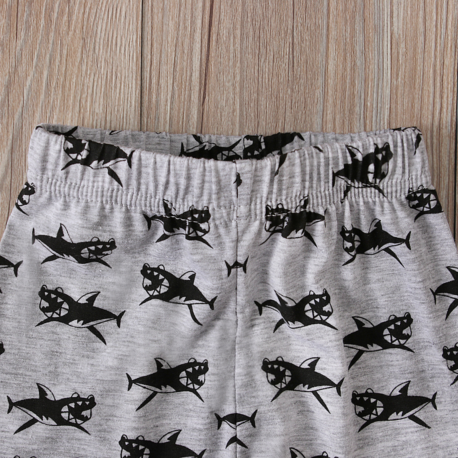 Серый пуловер с длинными рукавами и круглым воротником с принтом акулы и штаны с эластичной резинкой на талии, идеальный подарок для мальчиков.