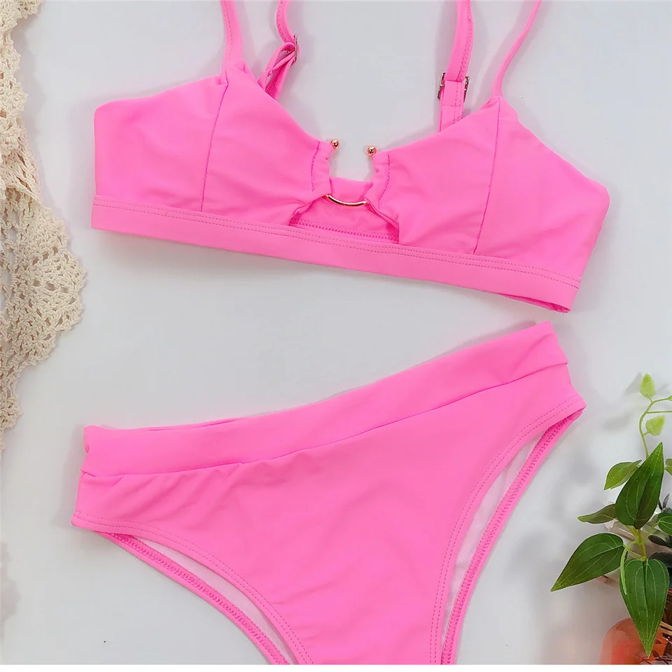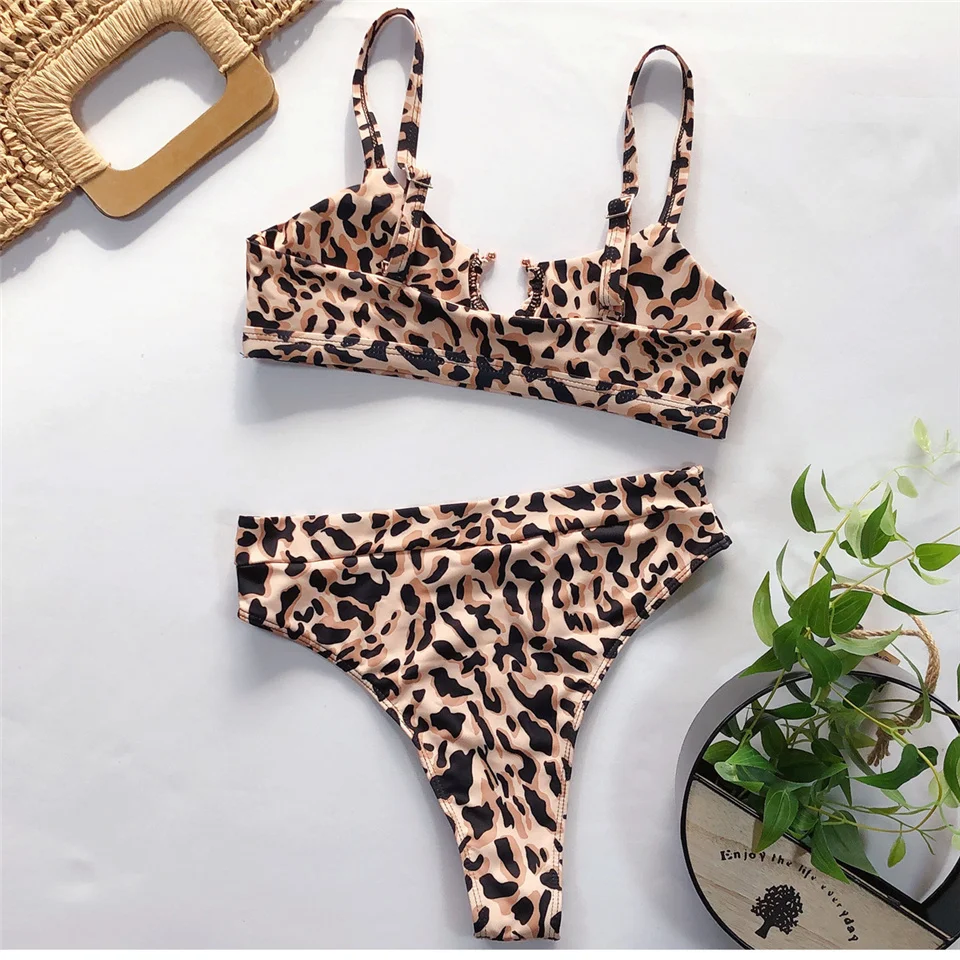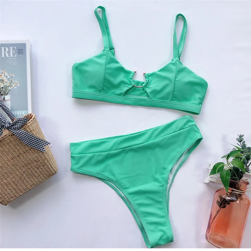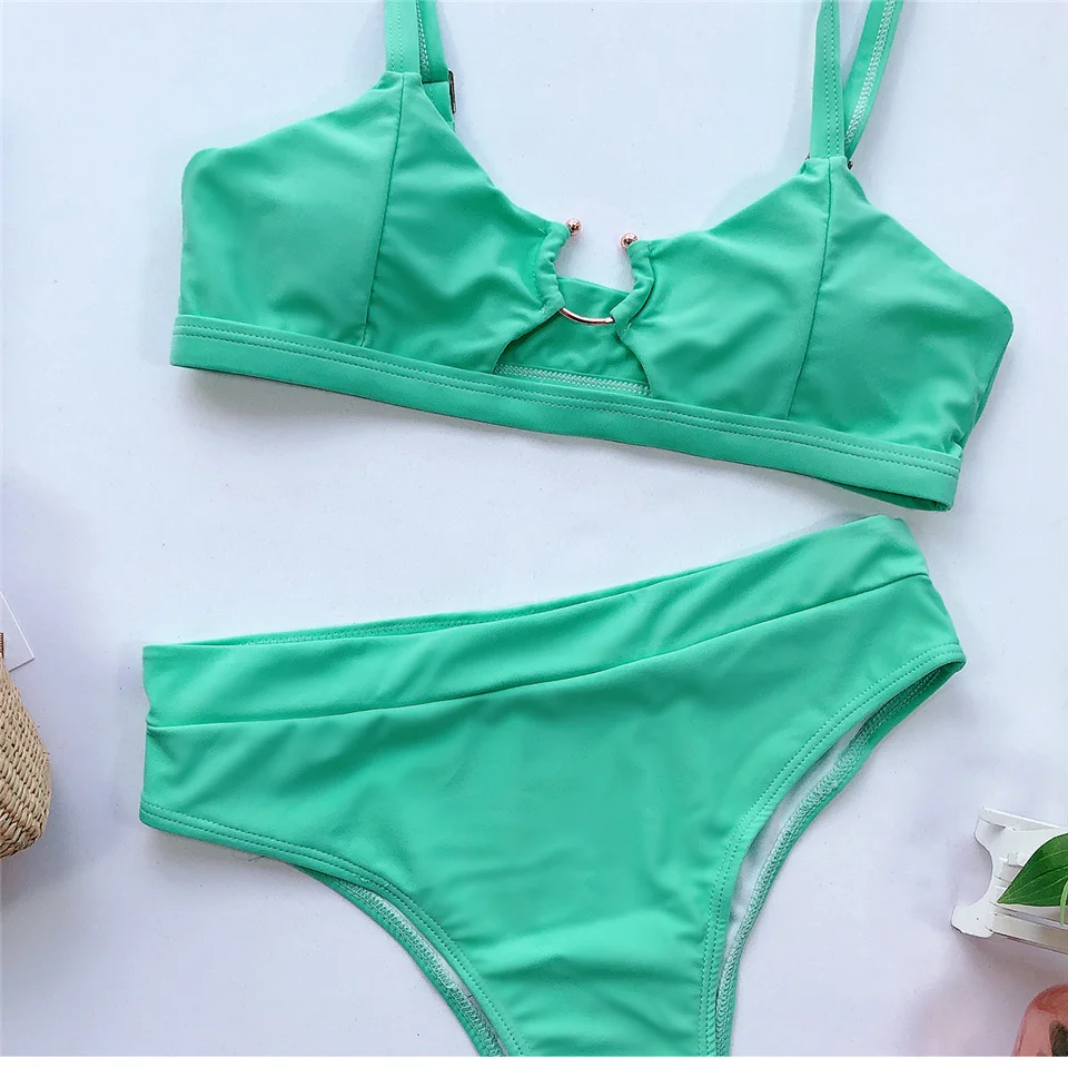Женское бикини однотонное летнее модное пикантное с бронзовыми блестками на