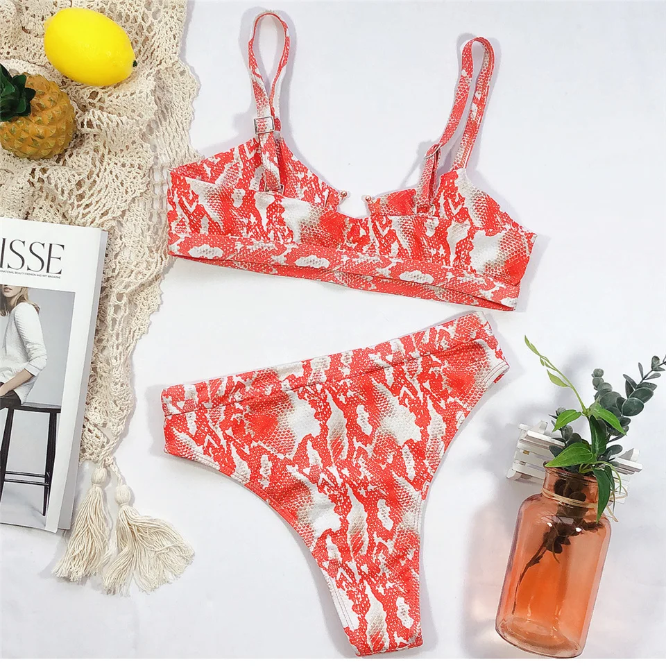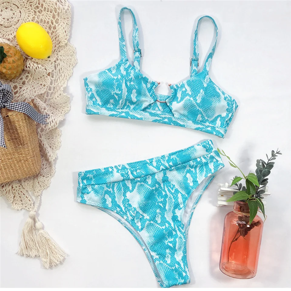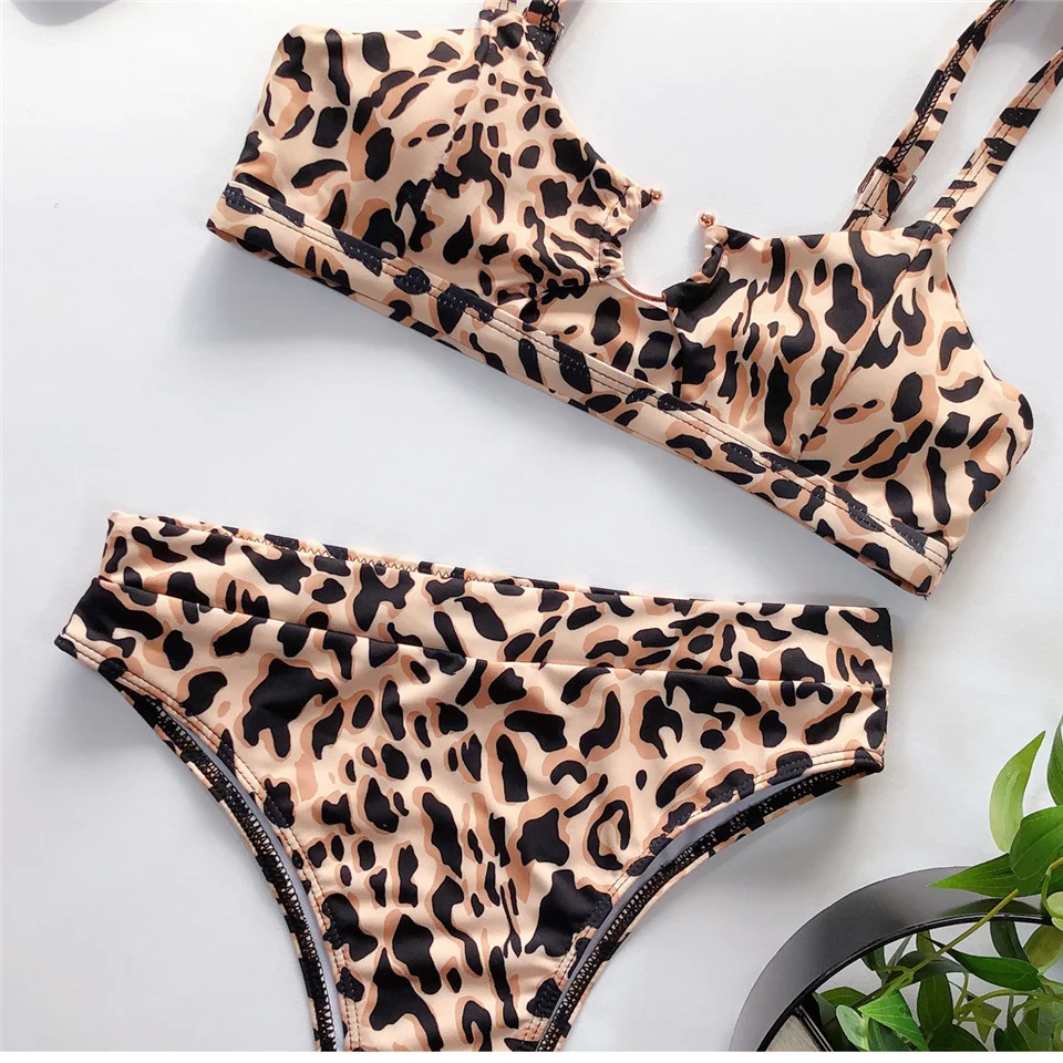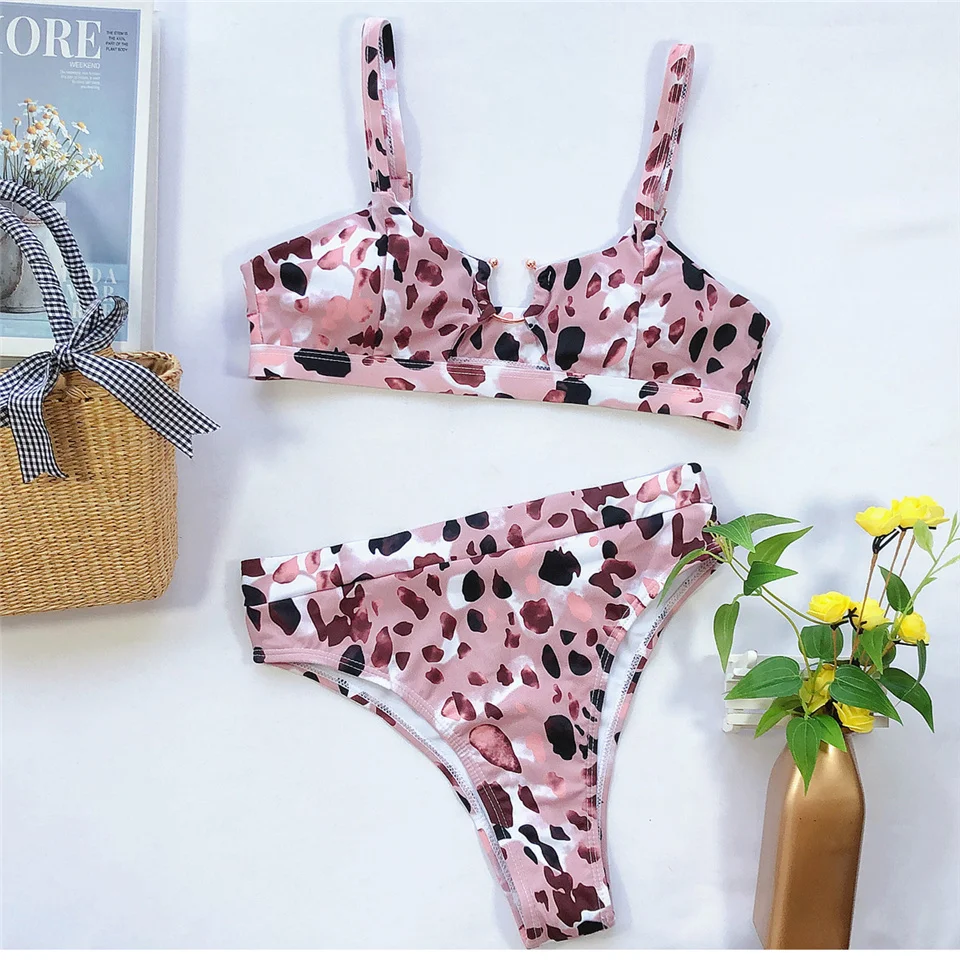 Женское бикини однотонное летнее модное пикантное с бронзовыми блестками на
