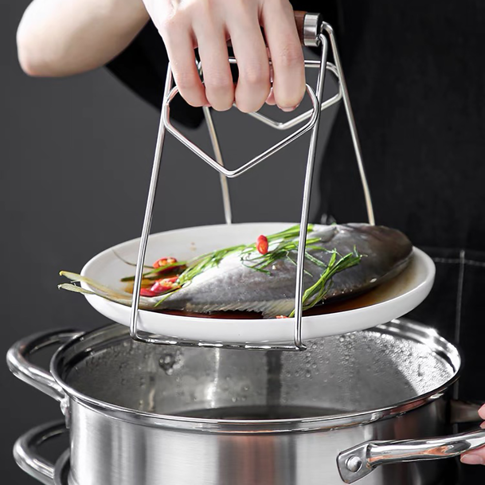 Складной зажим для горячей посуды из нержавеющей стали, зажим для чаши с защитой от ожогов, тарелки кастрюли, держатель кухонных инструментов