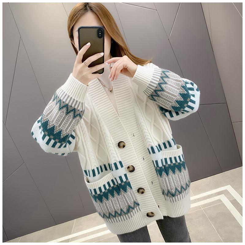 2021 осенне-зимний женский кардиган, теплый вязаный свитер, куртка с принтом, модный вязаный кардиган, пальто, женские свободные свитера, X298