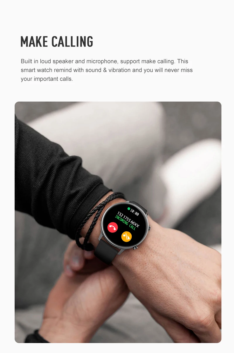 Встроенный громкий динамик и микрофон, поддержка звонков. Эти умные часы напоминают звук и вибрацию, и вы никогда не пропустите ваши важные звонки.