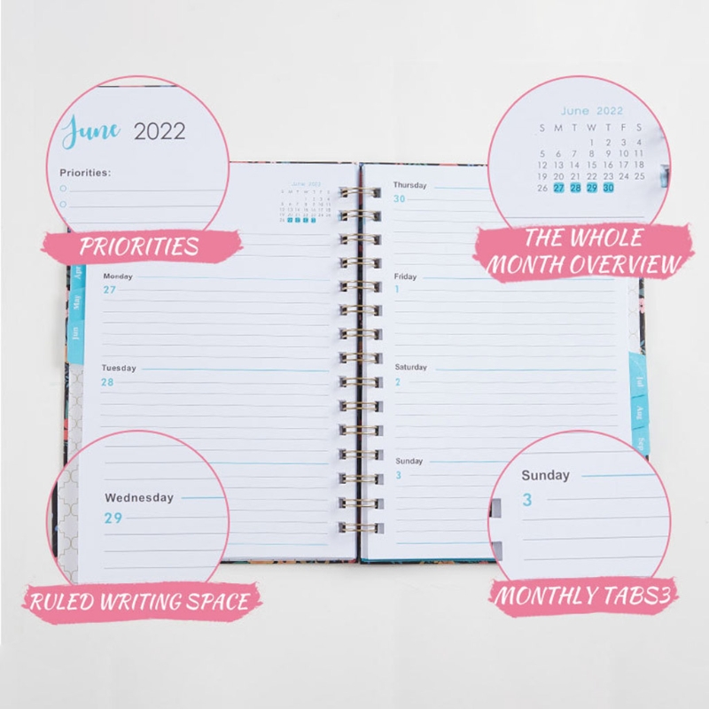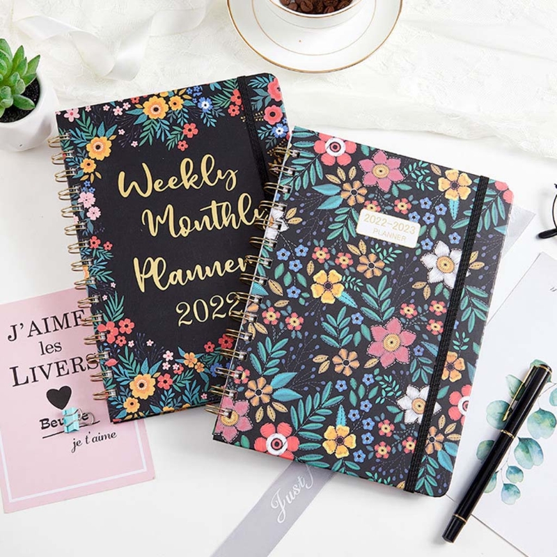2022-2023 HARDCOVER MONTHLY/WEEKLY/DAILY PLANNER. Monthly Index Labels; Quick Reference Information Pages; Calenndar Holiday; Monthly Ruled Pages; Weekly Ruled Pages; Flexible Elastic Strap; Floral Texture Hardcover; 68 Sheets/136 Page thick paper. Wonderful schedule, makes your life and work more efficiency.
