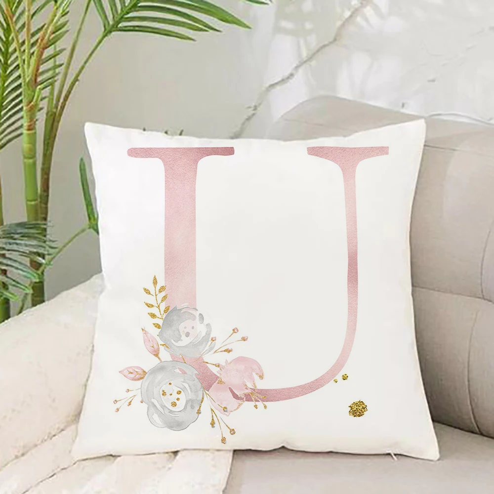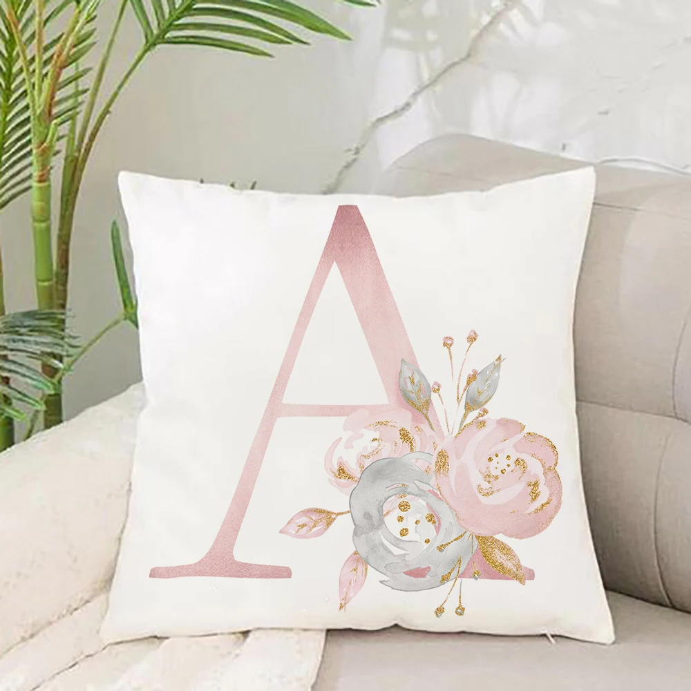 Наволочка с розовыми цветами и английским алфавитом A B C, квадратная наволочка для дома, гостиной, дивана, наволочка для подушки, чехол для кофейни, автомобиля