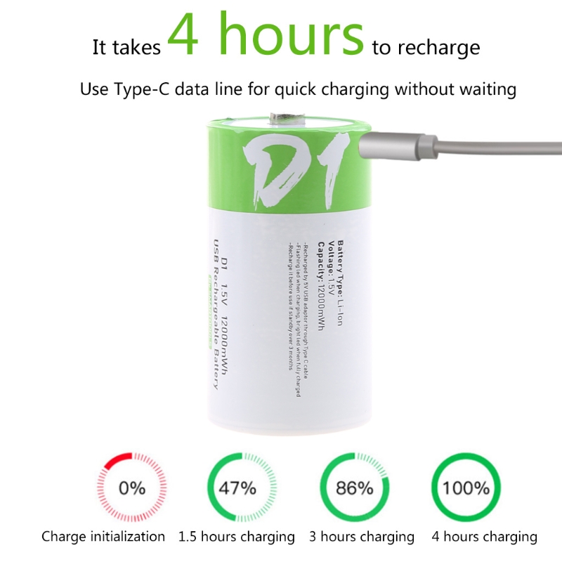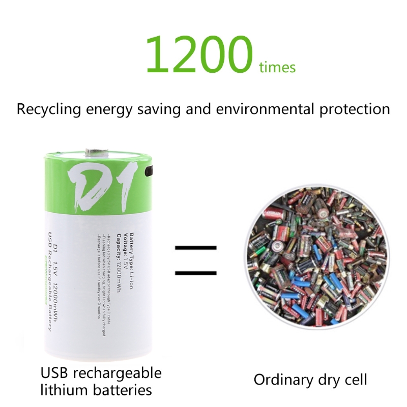 USB Перезаряжаемые батареи 1,5 V Тип-C Порты и разъёмы прямого заряда D1 батареи газовая плита бытовой нагреватель воды D1 батареи