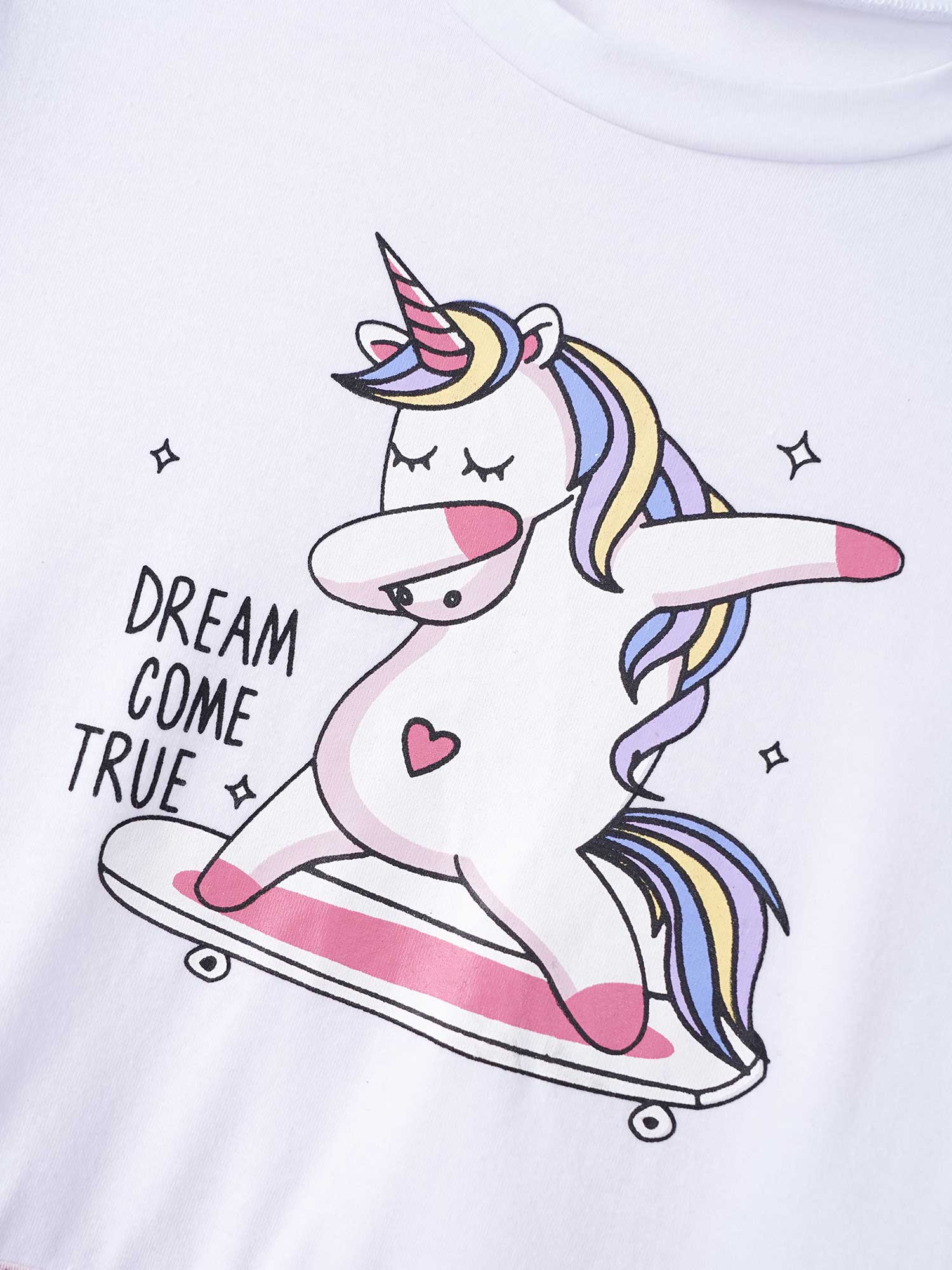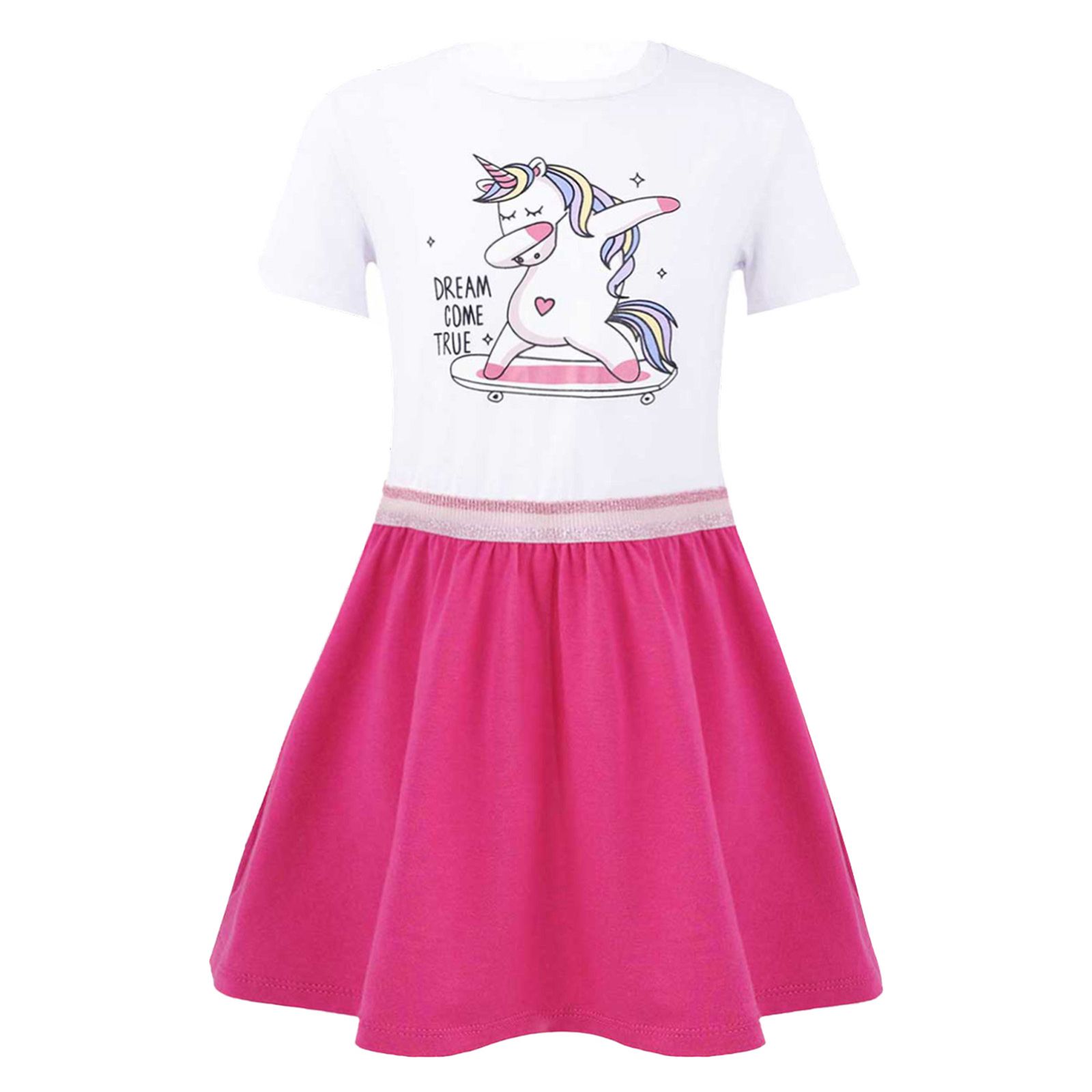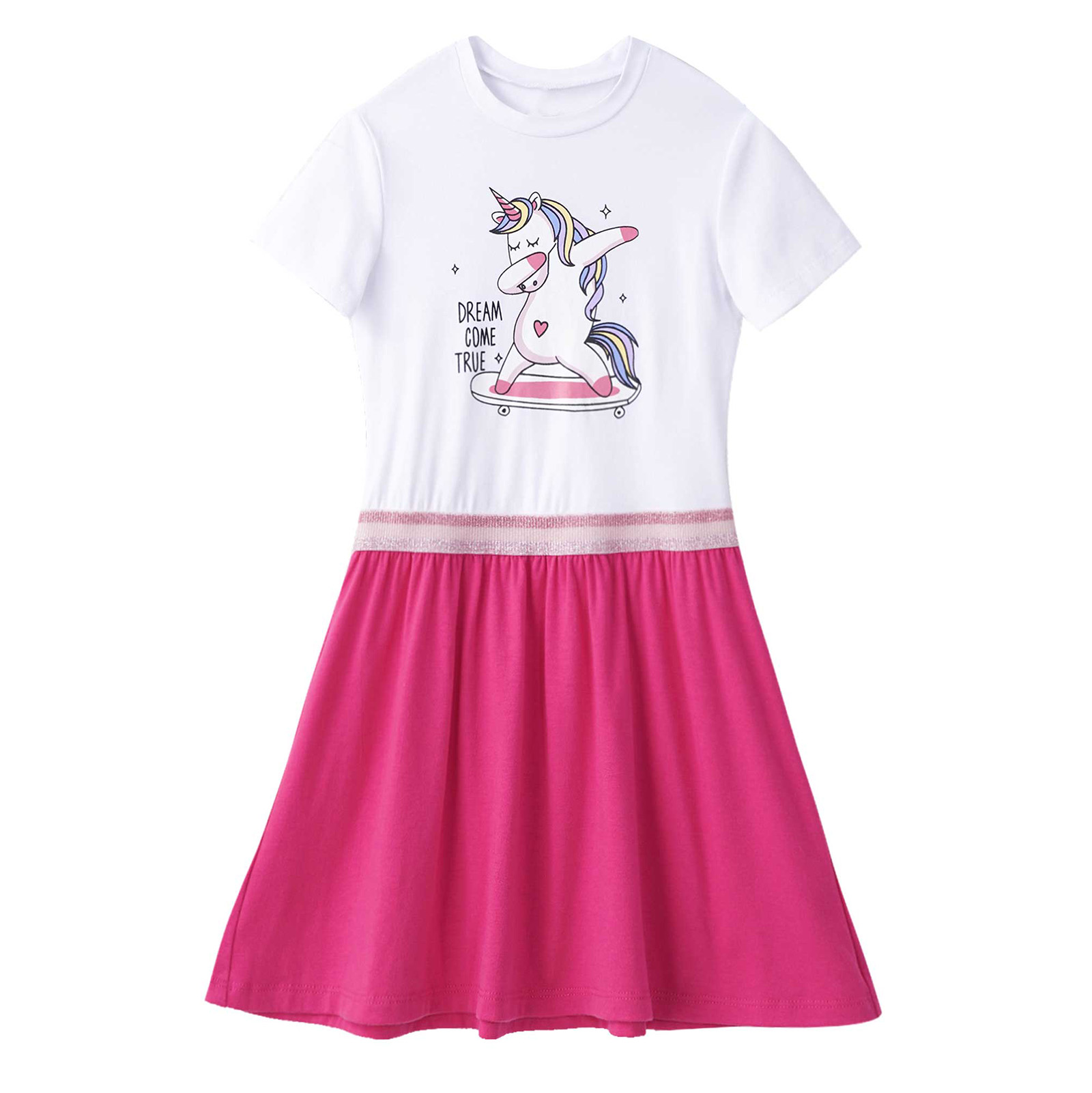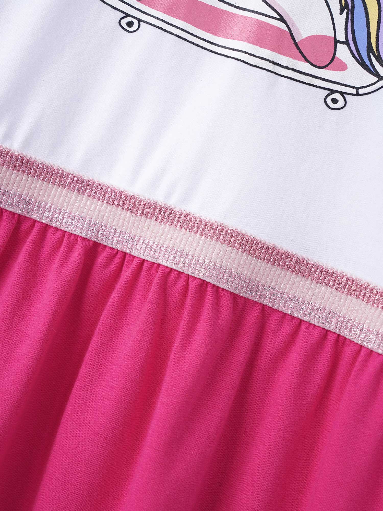 Короткие рукава; Принт с лошадкой; Длина до колена; Делает девочку милой и живой.