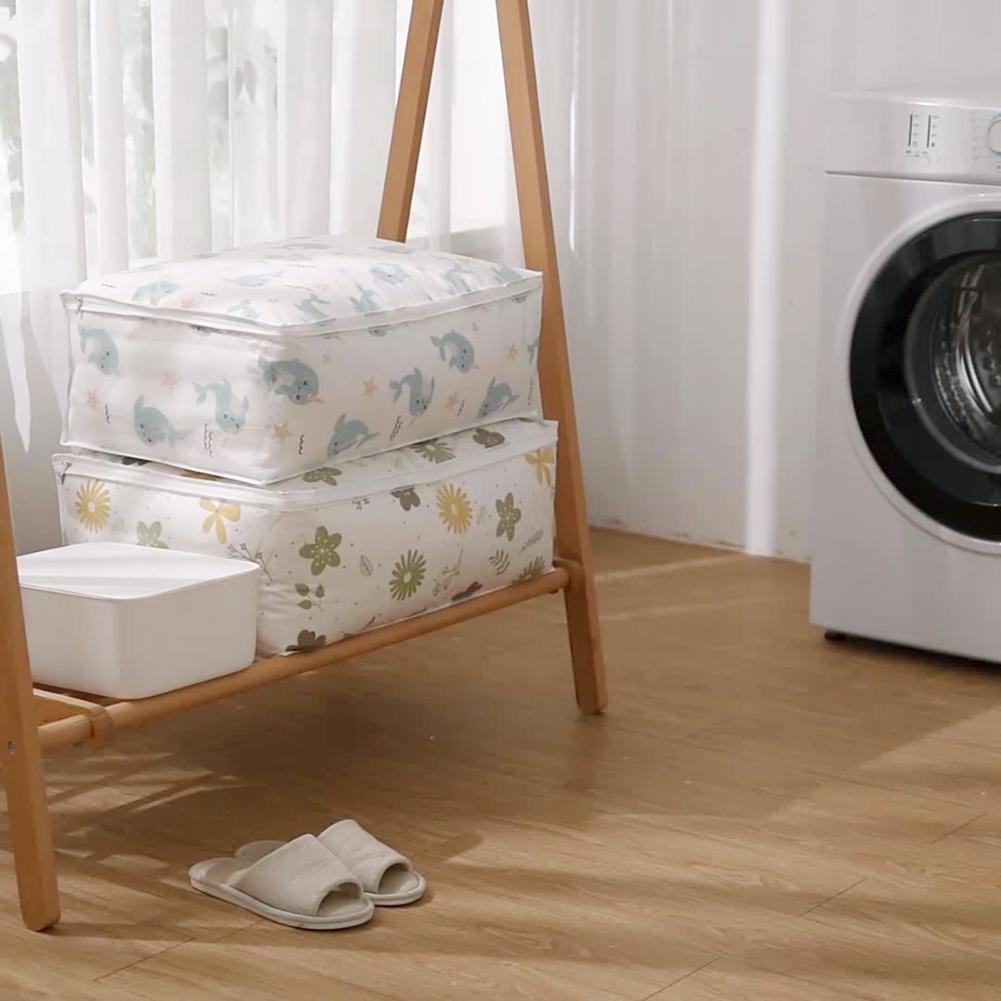 Storage Bag Versatility Durable Folding Printed Storage Bags with Sturdy Zipper for Comforter