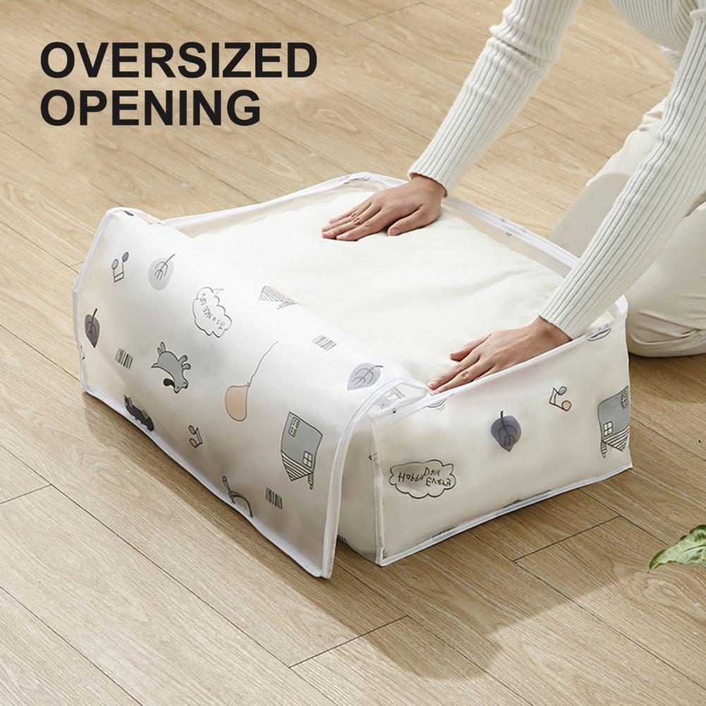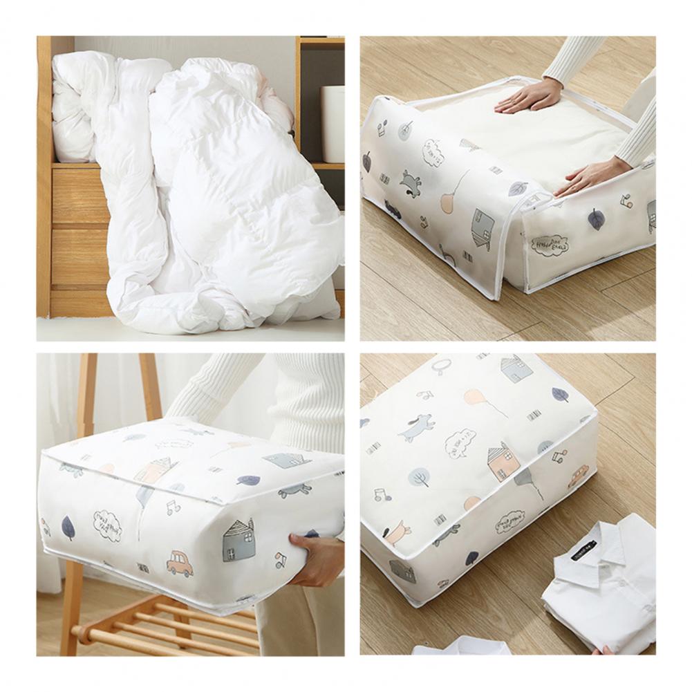 A storage bag with zipper is large, collapsible, durable, waterproof, dust-proof and moisture-proof, which can be used to store clothing and bedding.