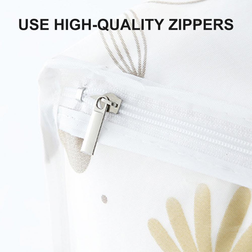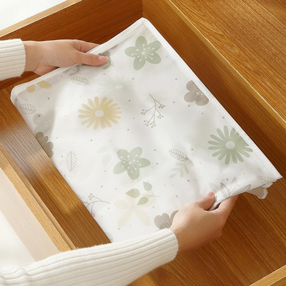 This printed storage bag that is zippered, eco-friendly, washable is made of PEVA, which gives people a good hand in housekeeping because of its versatility.
