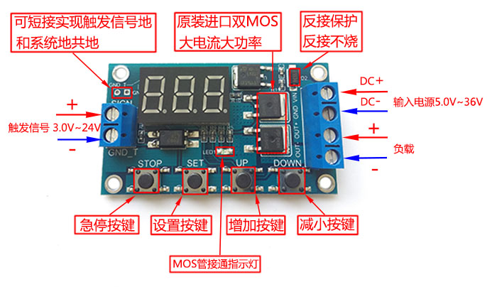 1.:Рабочее напряжение: 5 В-36 В постоянного тока;