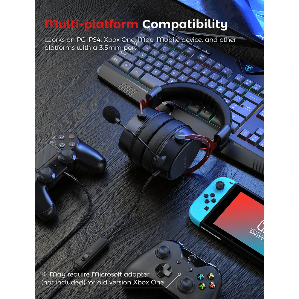 Игровая гарнитура Mpow surround sound предназначена для всех основных игровых устройств. Универсальный 3,5 мм jack делает его идеальным для использования с ПК и Mac, так же, как PS4 Pro и PS4 консолей, контроллером Xbox One, Nintendo Switch, iPad, мобильный телефон и т. д. Советы: вам нужен адаптер Microsoft (не входит в комплект) при подключении к старой версии Xbox One.