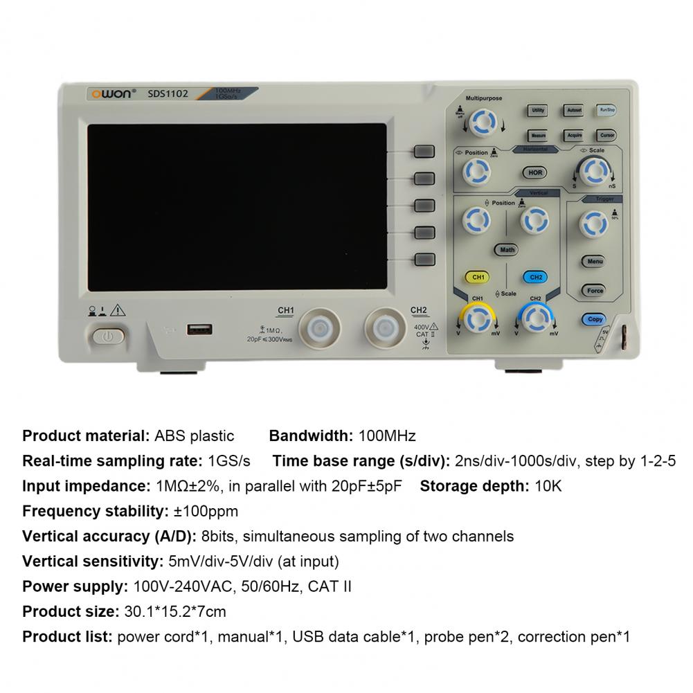 Это цифровой осциллограф с двухканальным хранилищем и 7-дюймовым экраном с высоким разрешением 800 × 480 пикселей.