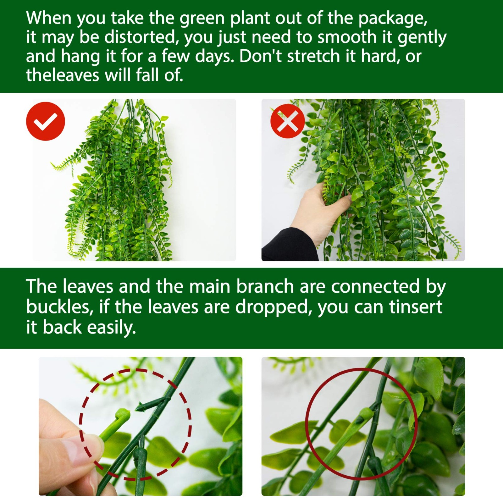 - Изготовленные из листовых пластмассовых металлических ветвей, в отличие от свежих растений, растения не требуют обслуживания, долговечны, никогда не увядают и не падают, могут добавить богатый и элегантный внешний вид к любому украшению, И добавить Живое украшение в ваш дом