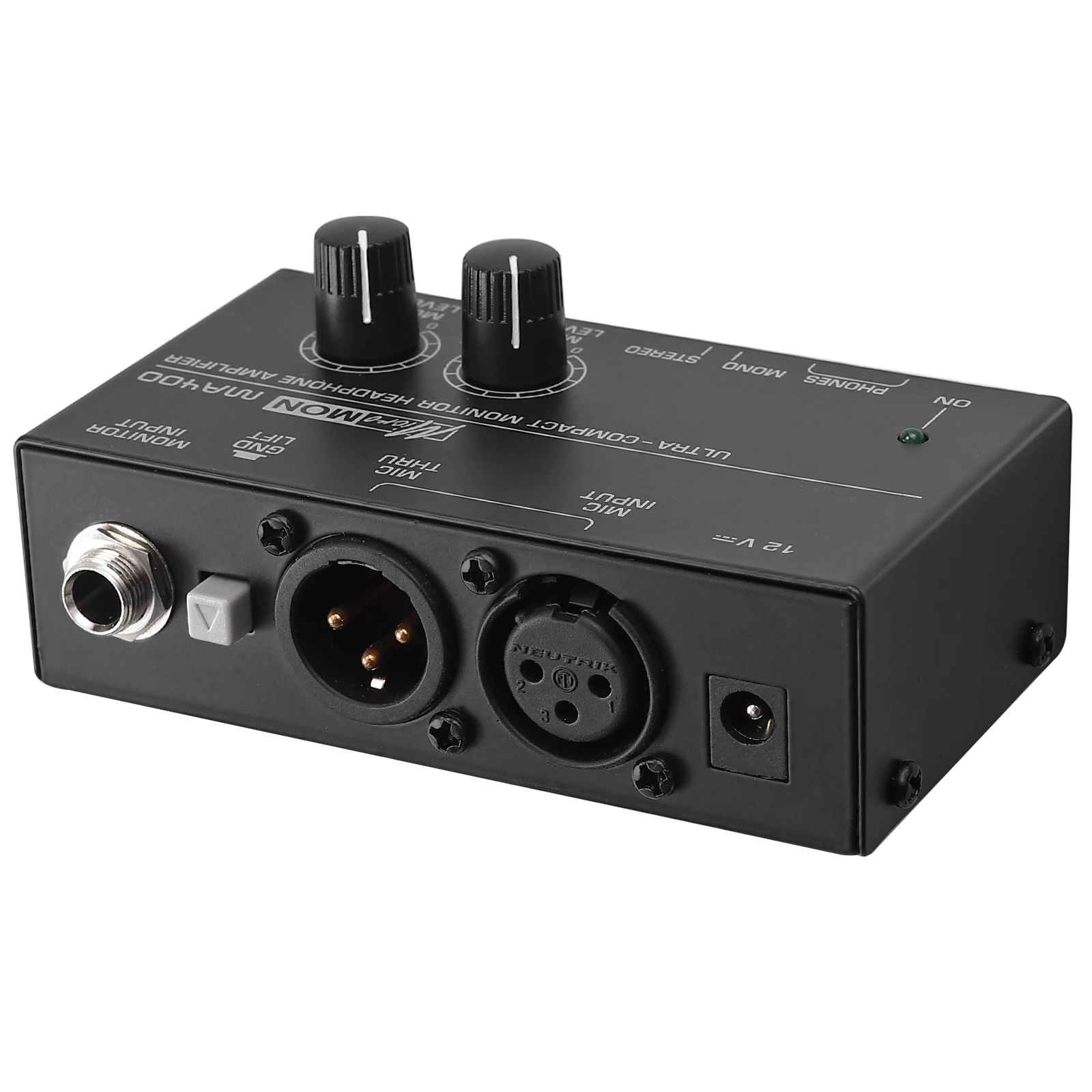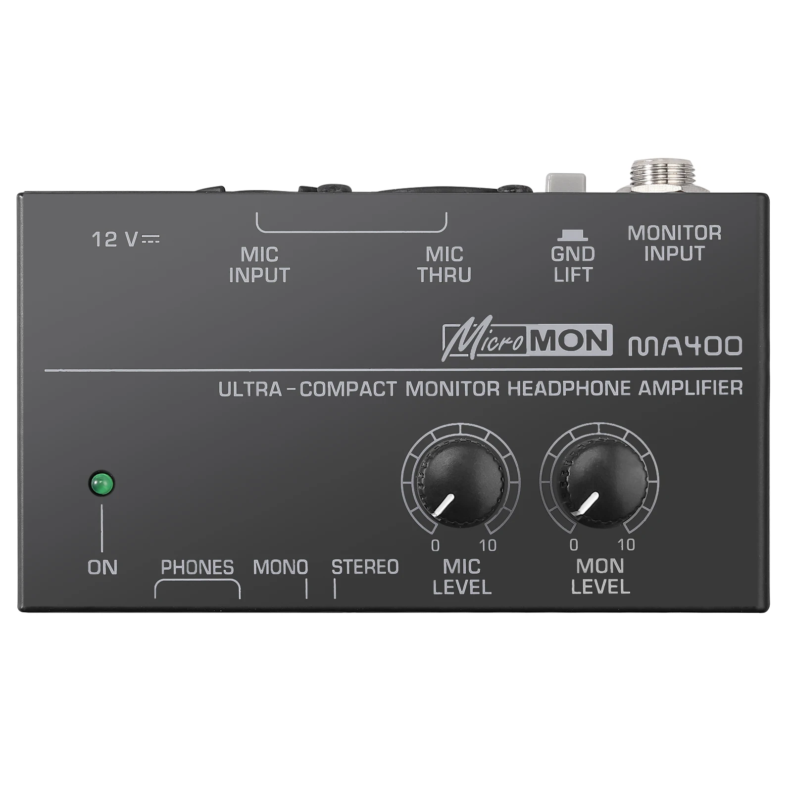 MA400 ультра-компактный усилитель для наушников для XLR микрофона и аудиосигнала с регуляторами громкости, 6,35 мм и 3,5 мм выходы для наушников, 12 В Сертифицированный источник питания для студийных и сценических приложений