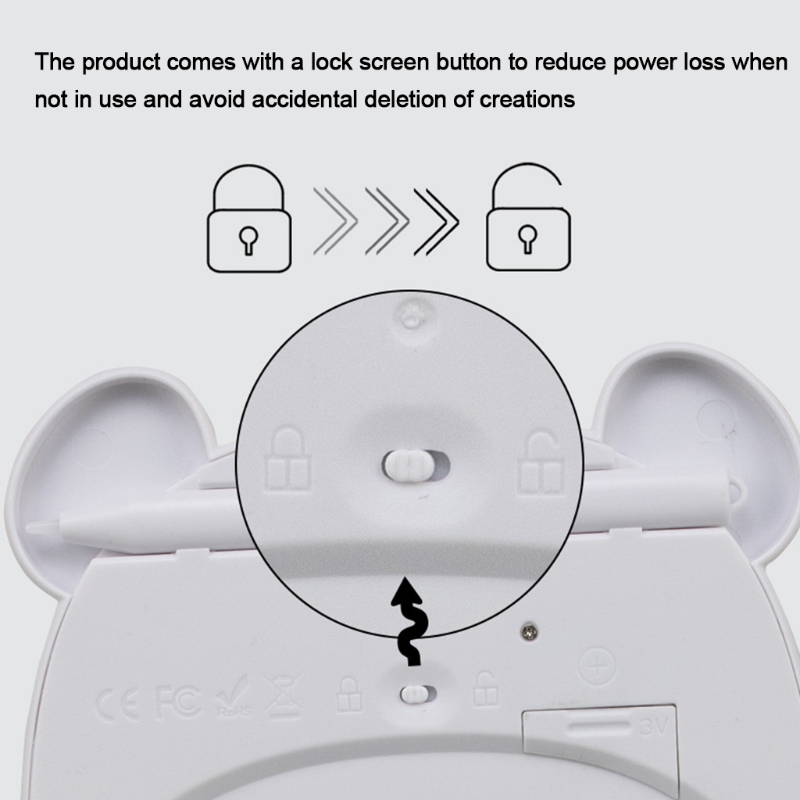 Симпатичный ЖК-планшет для письма: симпатичный дизайн планшета для рисования, потрясающая Дошкольная обучающая и развивающая игрушка для детей, идеально подходит для свободного воображения детей и высвобождения творчества. Простота в использовании, одна кнопка удаления и функция блокировки экрана.