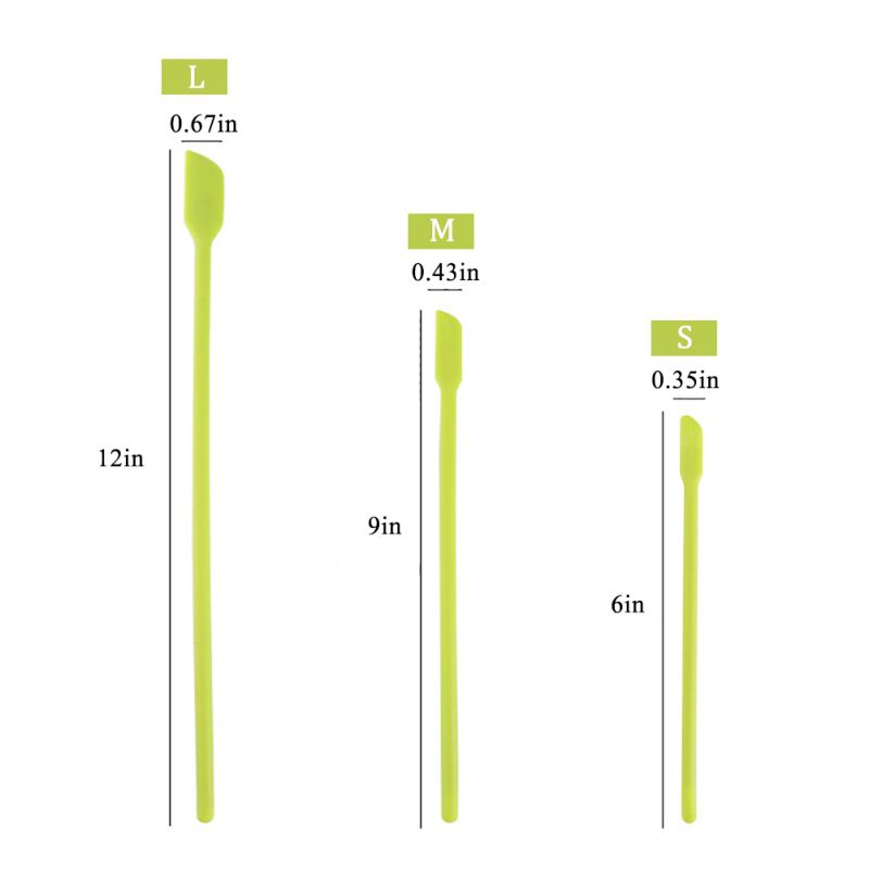 4. В комплект входит 1 маленький шпатель, 1 средний шпатель и 2 больших шпатель, которые подходят практически к любой узкой бутылке для рта.