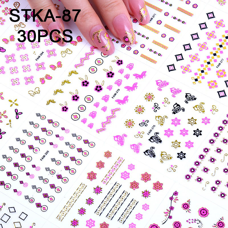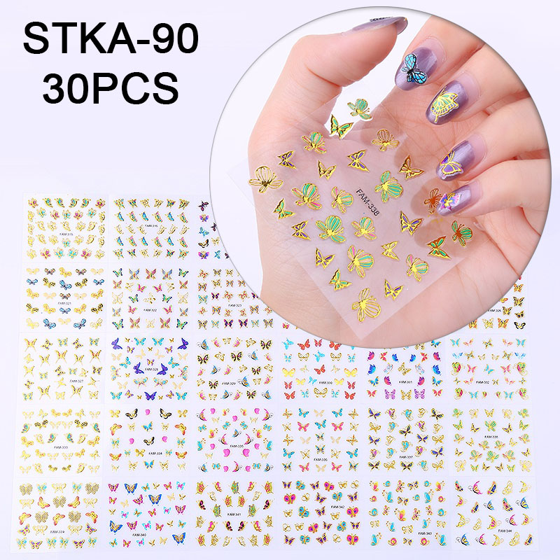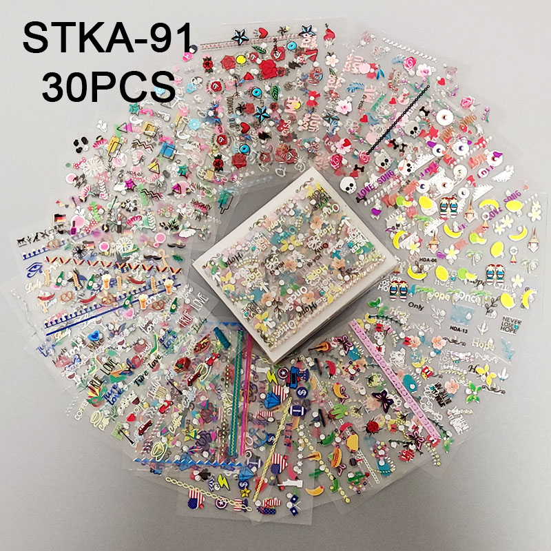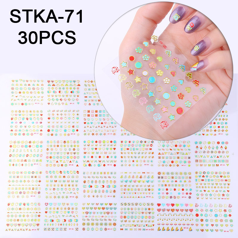 24/30 шт Набор для нейл-арта Стикеры Self-клеющимся Пресс для ногтей, для нанесения с помощью клея