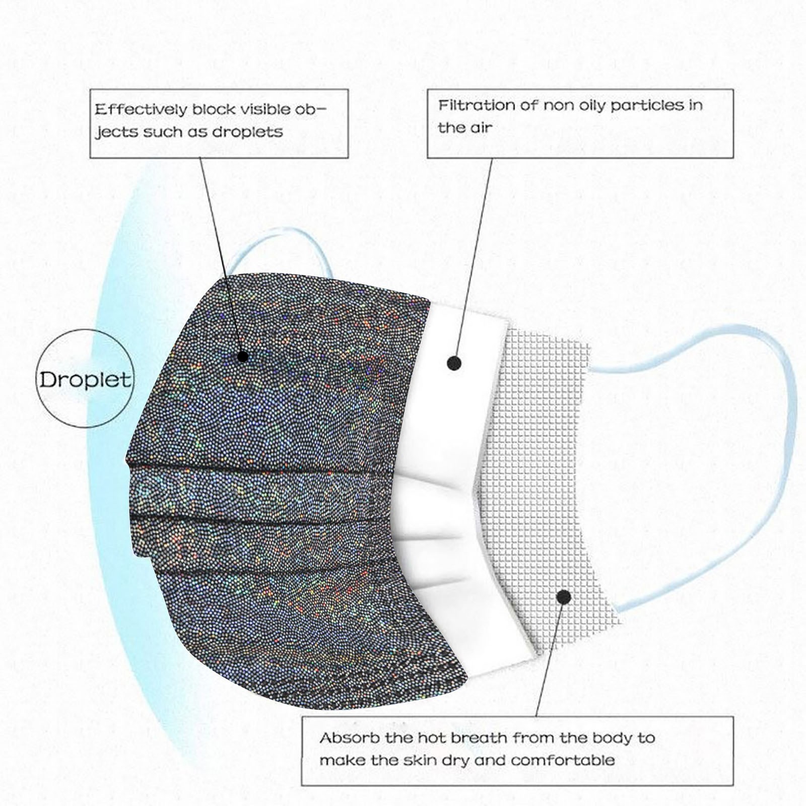 Дышащий материал и Блестящий Узор, что делает его полезным и модным. Признак 4 слоя из нетканого материала, дизайн, обеспечивает некоторые меры защиты от пыли, автомобильный отходящий газ, пыльцу и т. д.