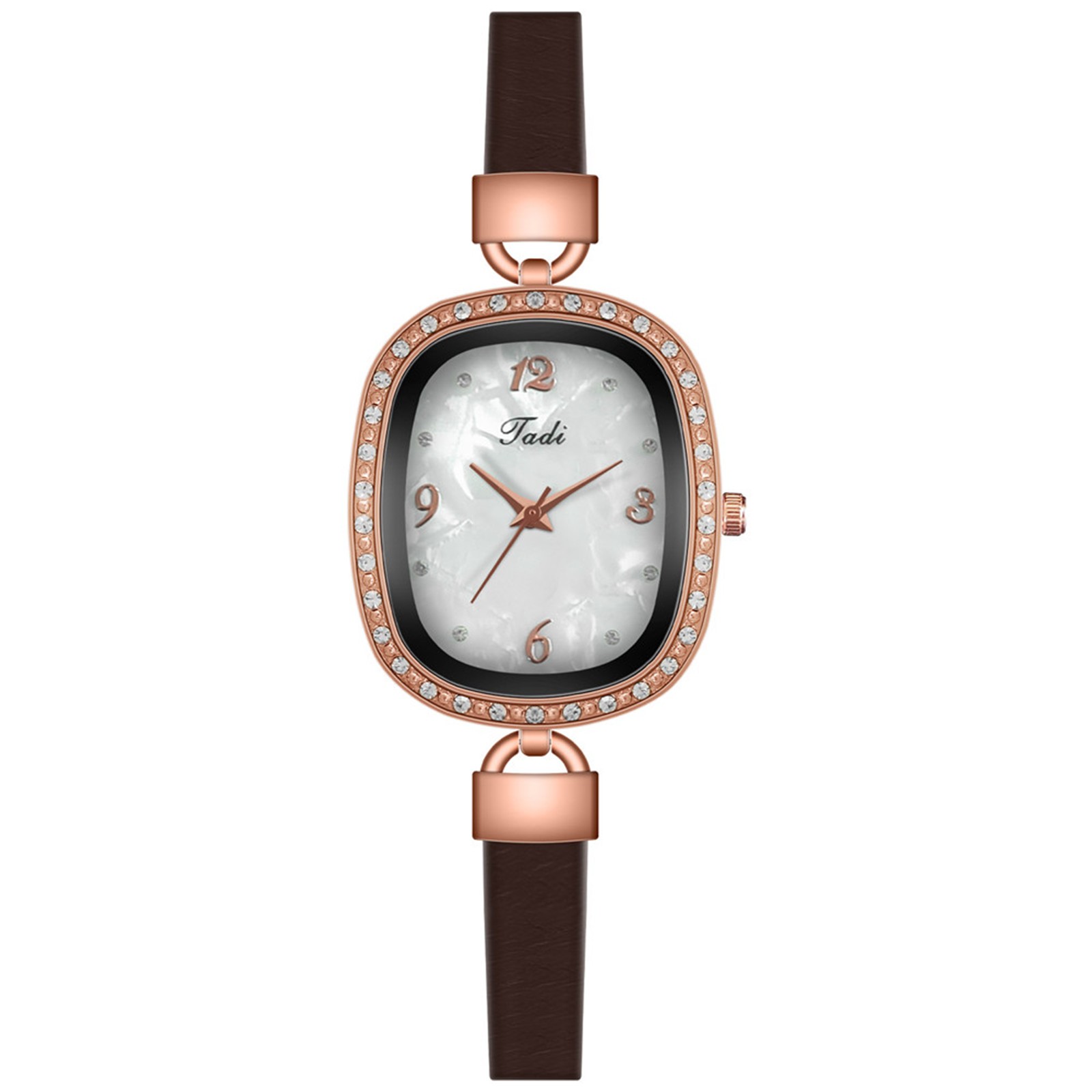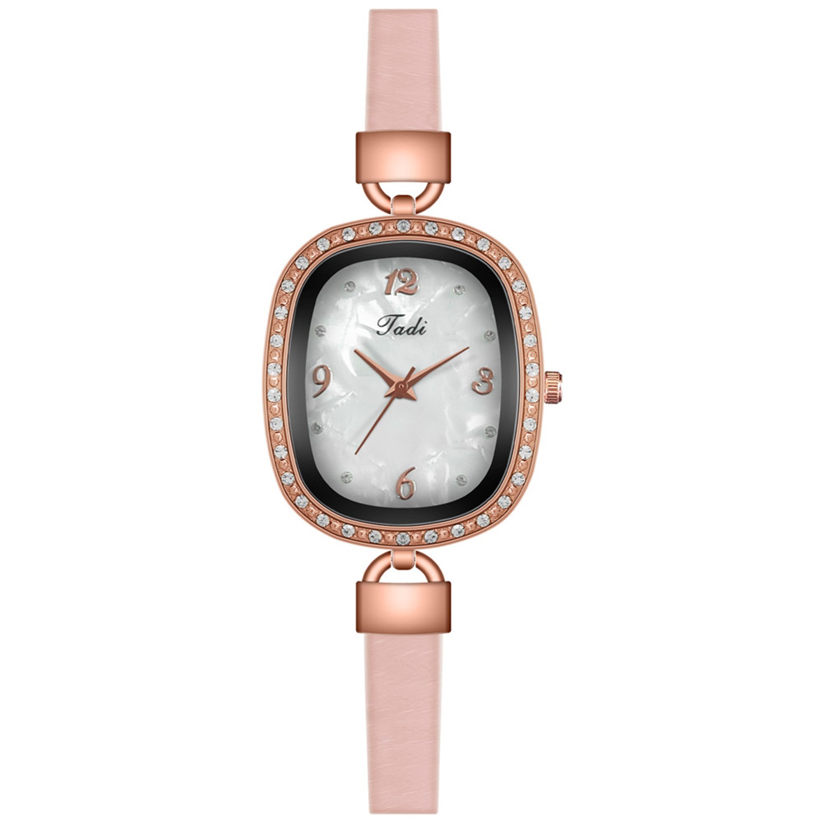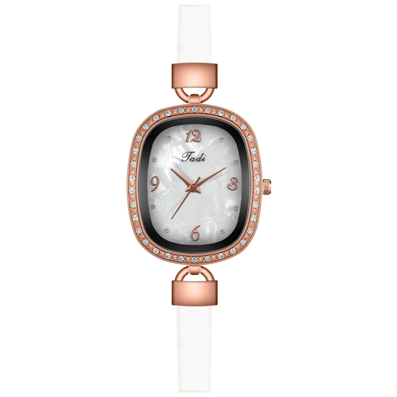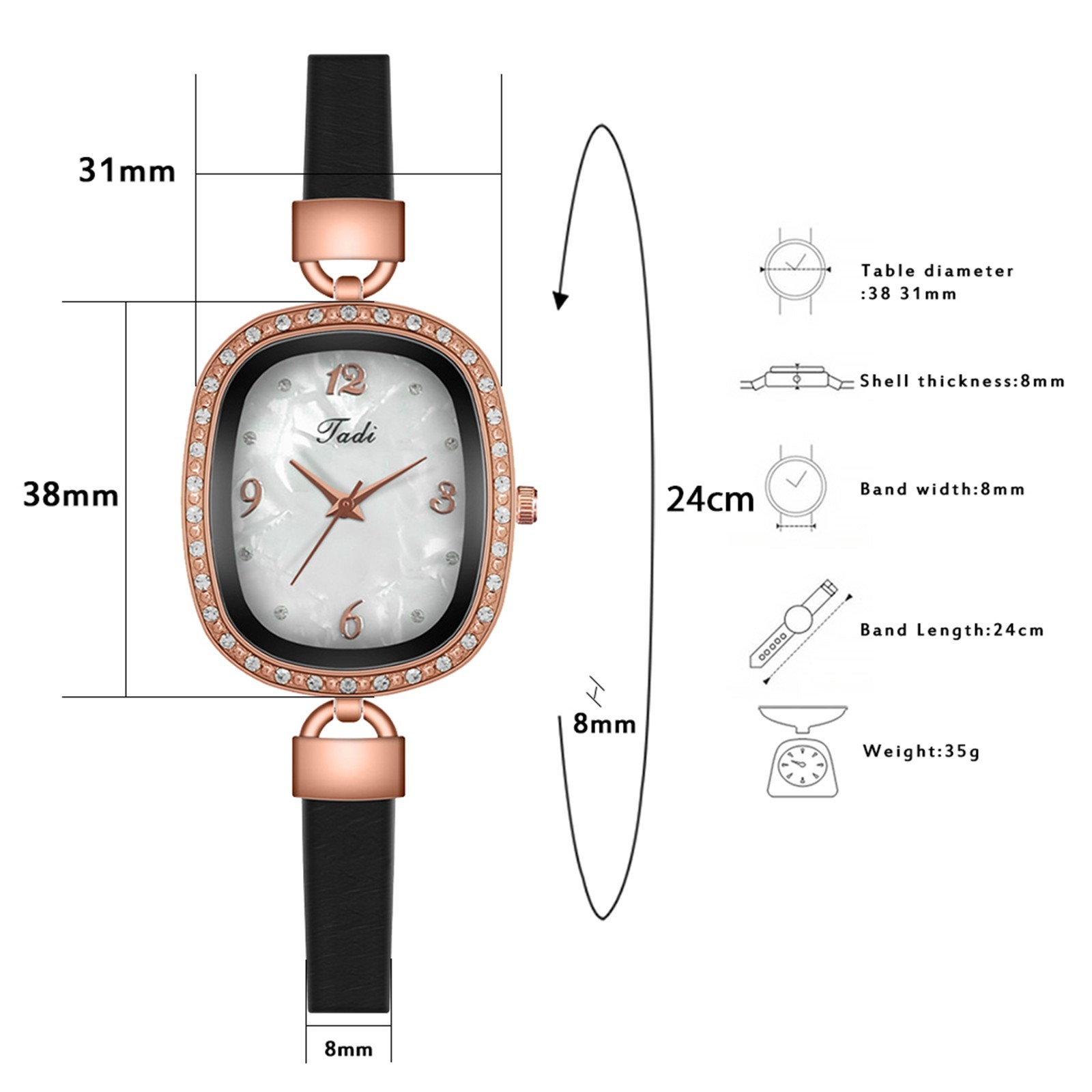 Овальные женские маленькие часы с бриллиантами и ремнем в стиле ретро в римском стиле с жемчугом