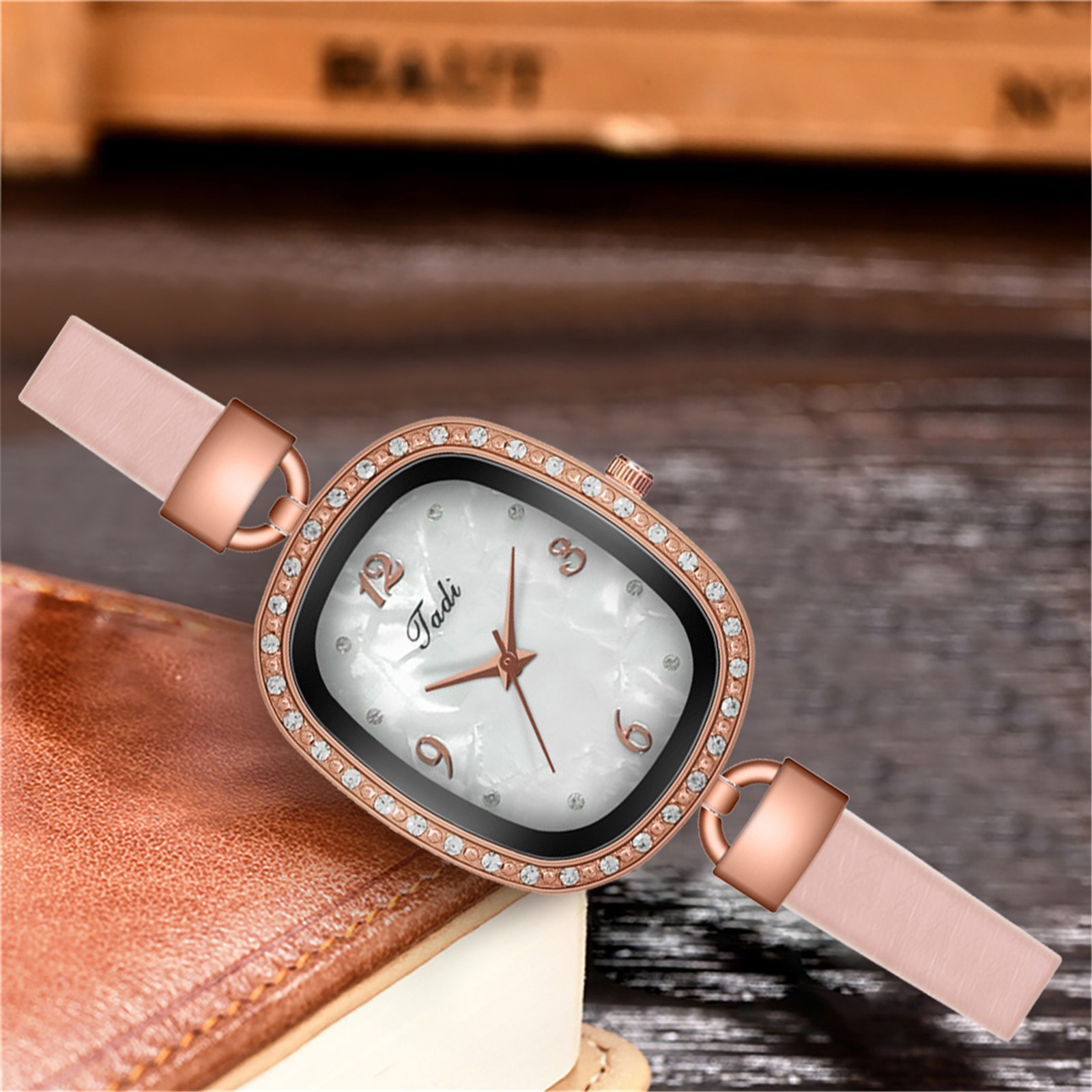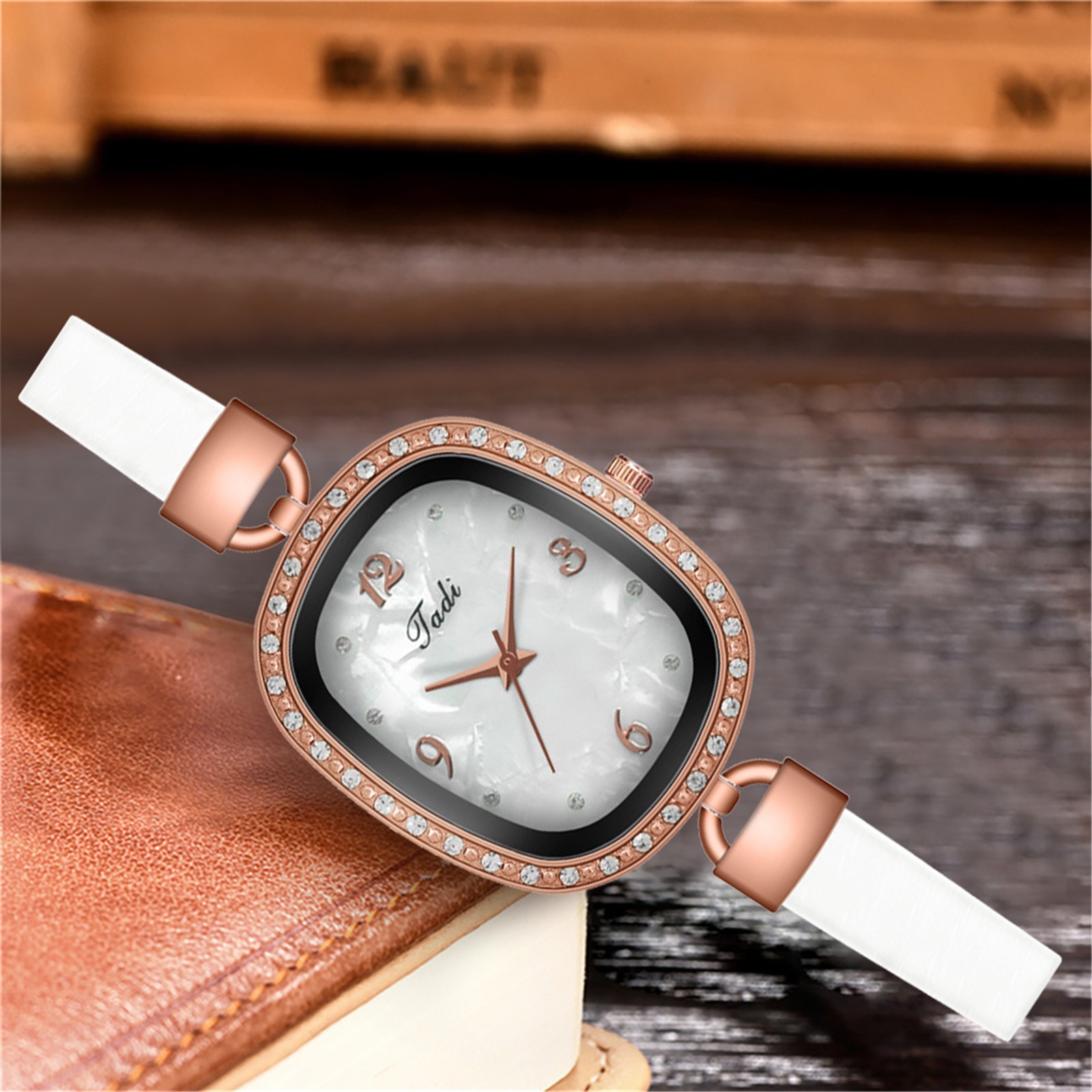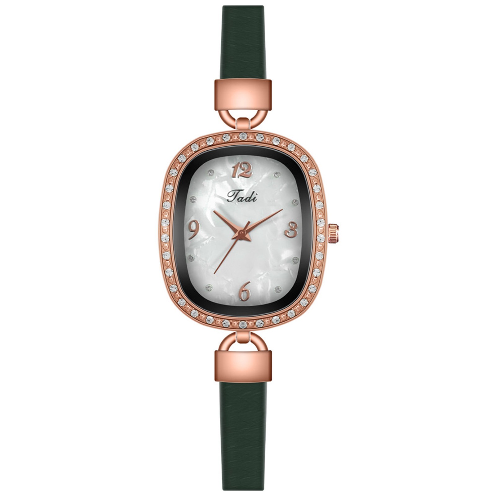 Овальные женские маленькие часы с бриллиантами и ремнем в стиле ретро в римском стиле с жемчугом