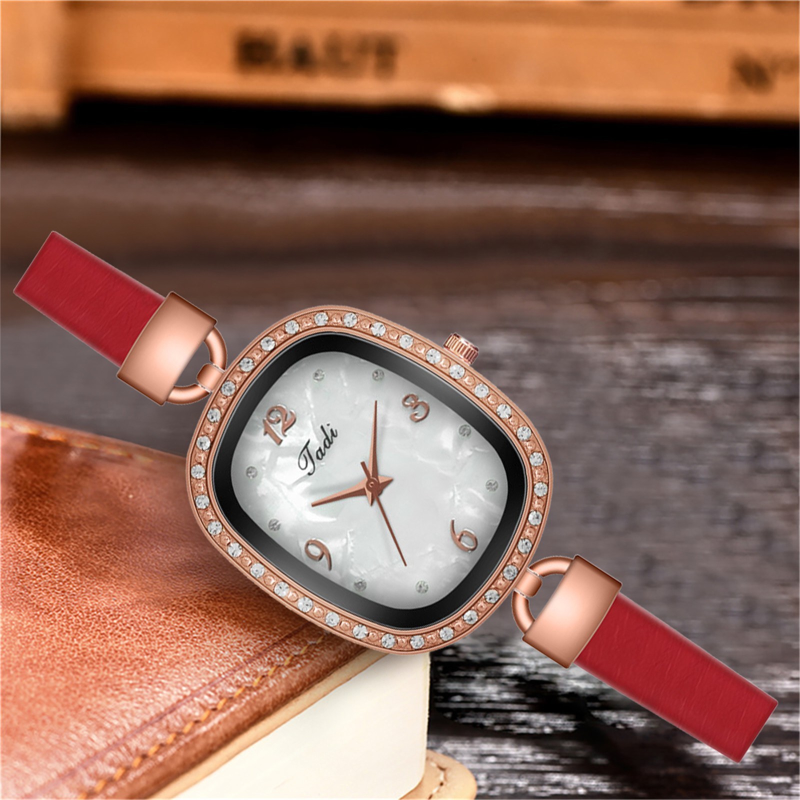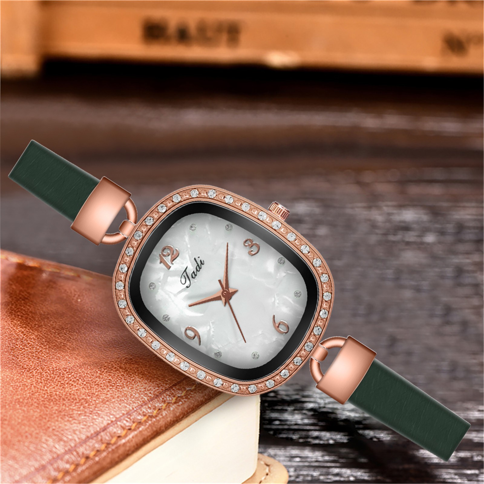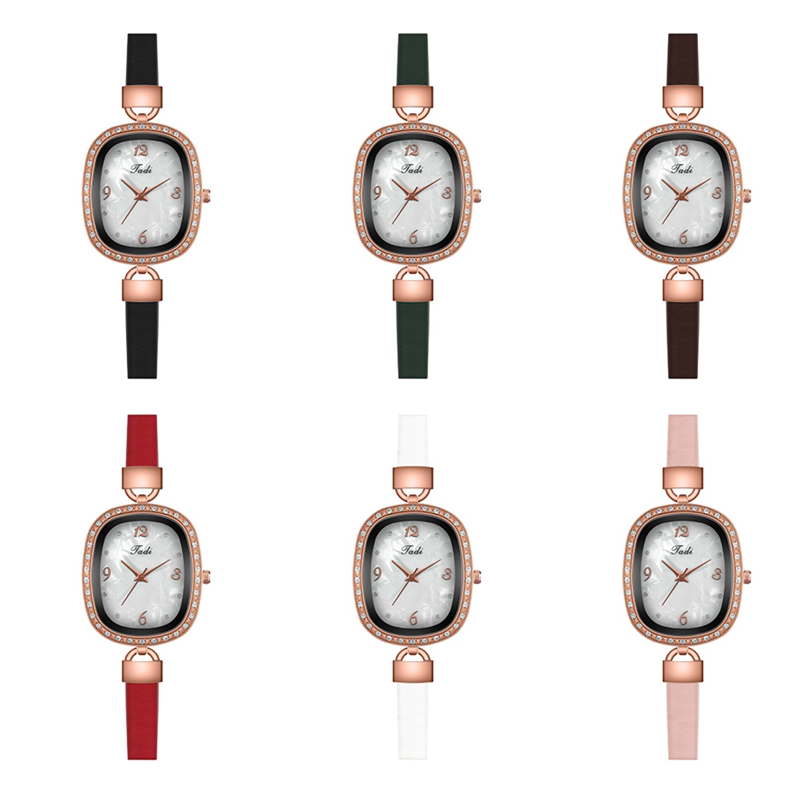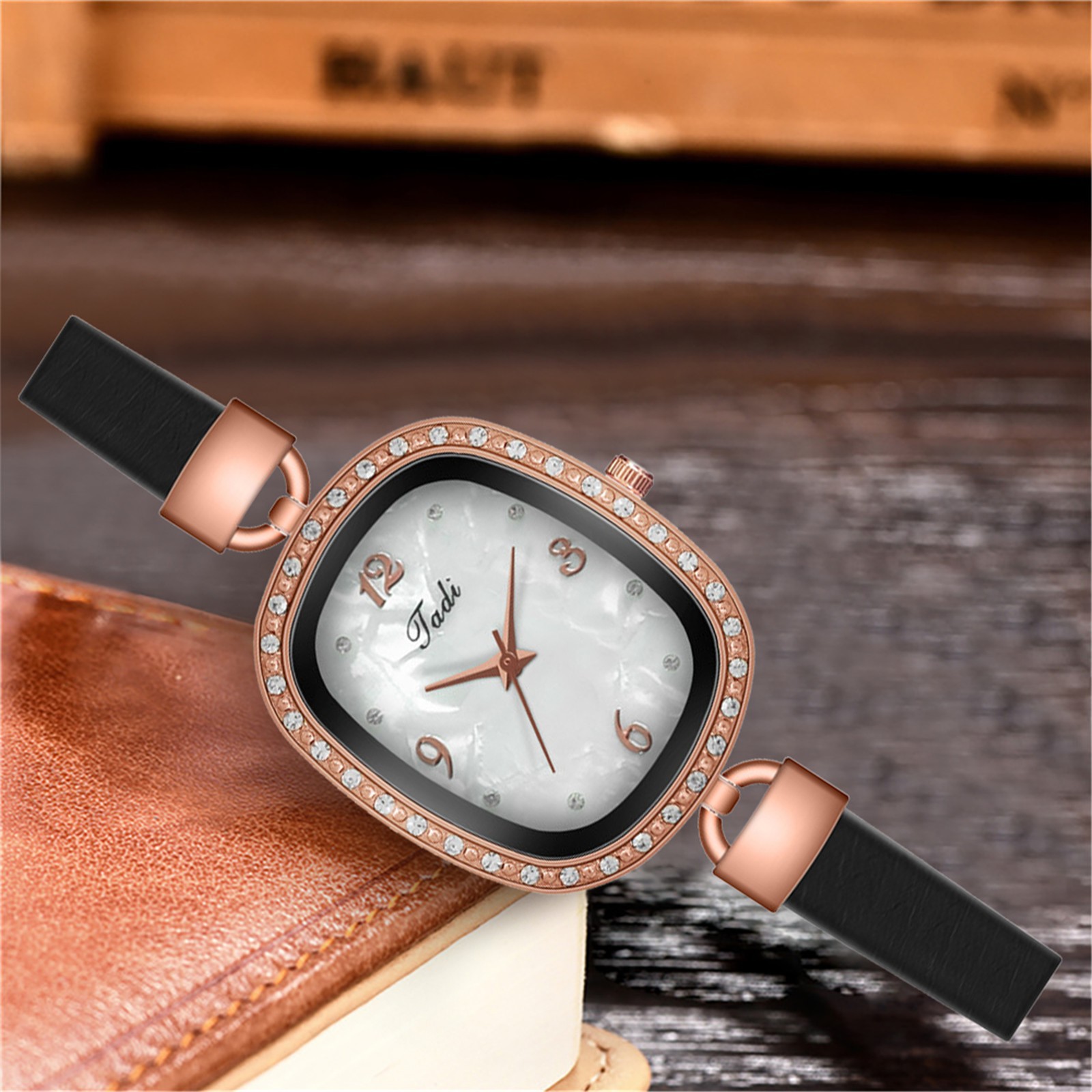 Овальные женские маленькие часы с бриллиантами и ремнем в стиле ретро в римском стиле с жемчугом