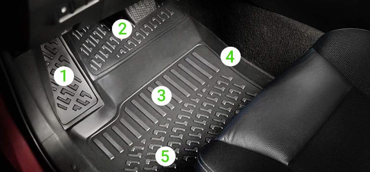 1-полная защита обеспечивается левой частью стопы. Эта часть, которая не находится во многих ковриках, важна для вашего автомобиля в сохранении чистоты и целостности коврика.