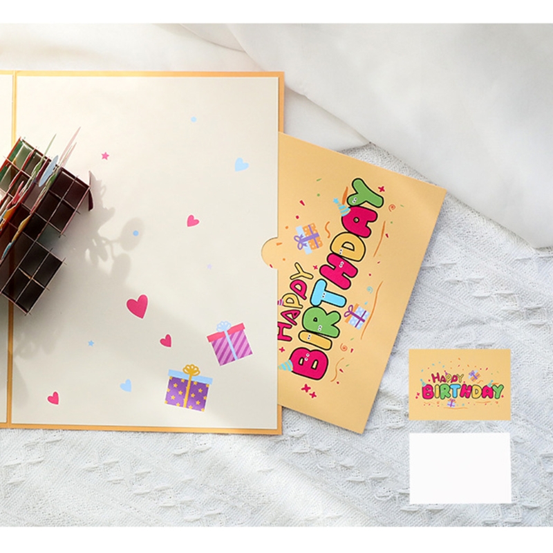 Поздравительная открытка на день рождения изготовлена из высококачественной листовой бумаги;