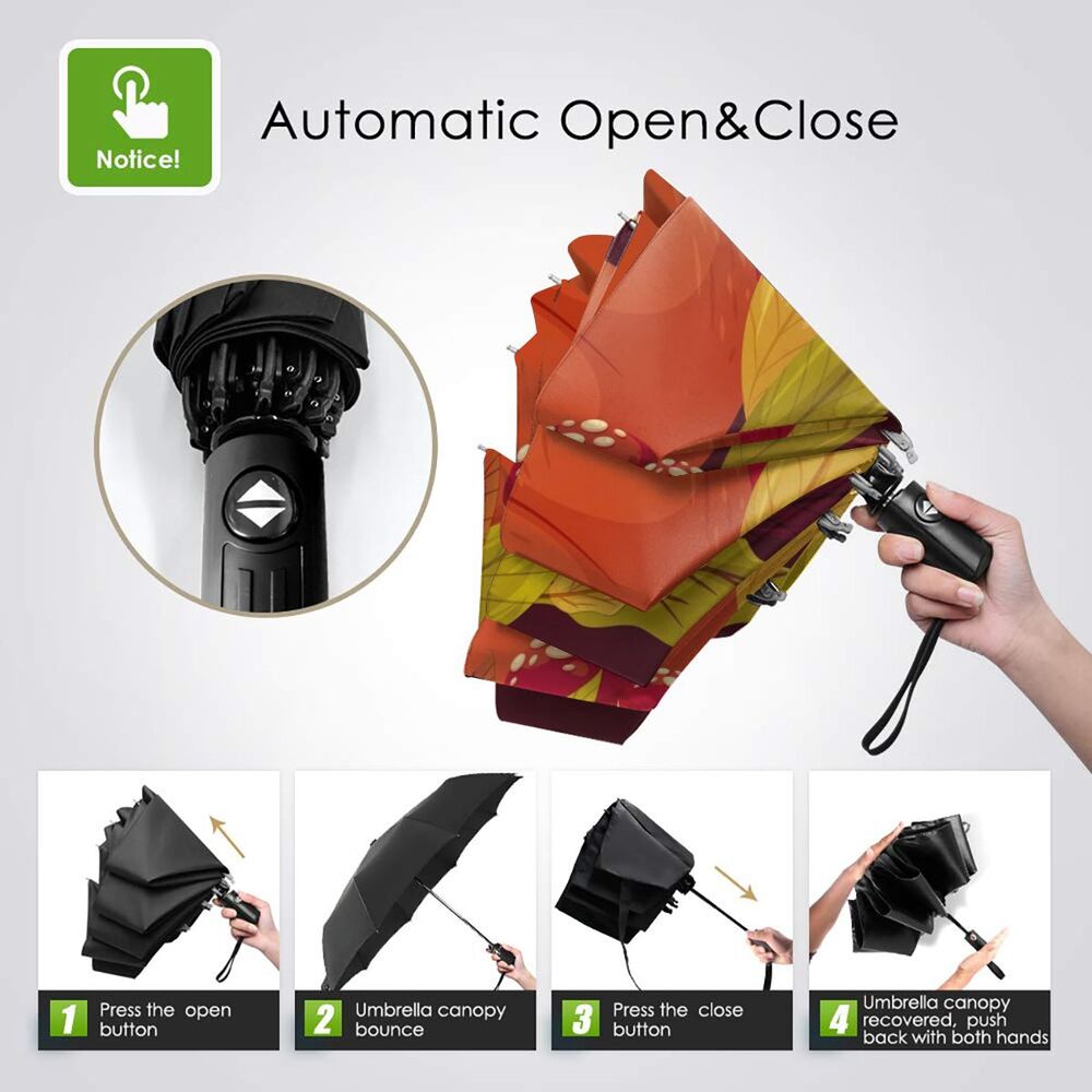 Черный ветрозащитный автоматический складной перевернутый зонт портативный