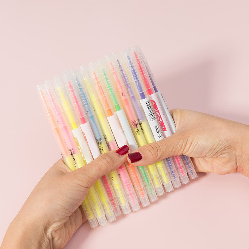 4.Double ended highlighter featuring a broad, chisel tip and fine bullet tip for broad highlighting or fine underlining