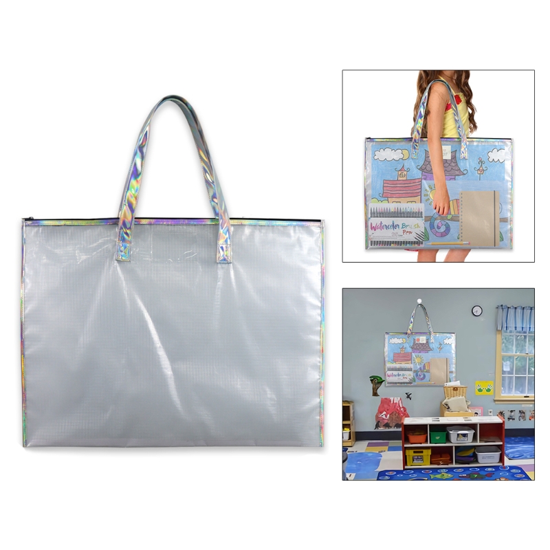 FOLDING STORAGE. This reflectivce poster storage bag sizes 19 x 25 inches. Lightweight, waterproof, wear resistant and durable. Folding storage, saving space for you. Perfect for artworks and sketchbooks of varying sizes. Forget your backpack and make all your projects well organized in this storage bag