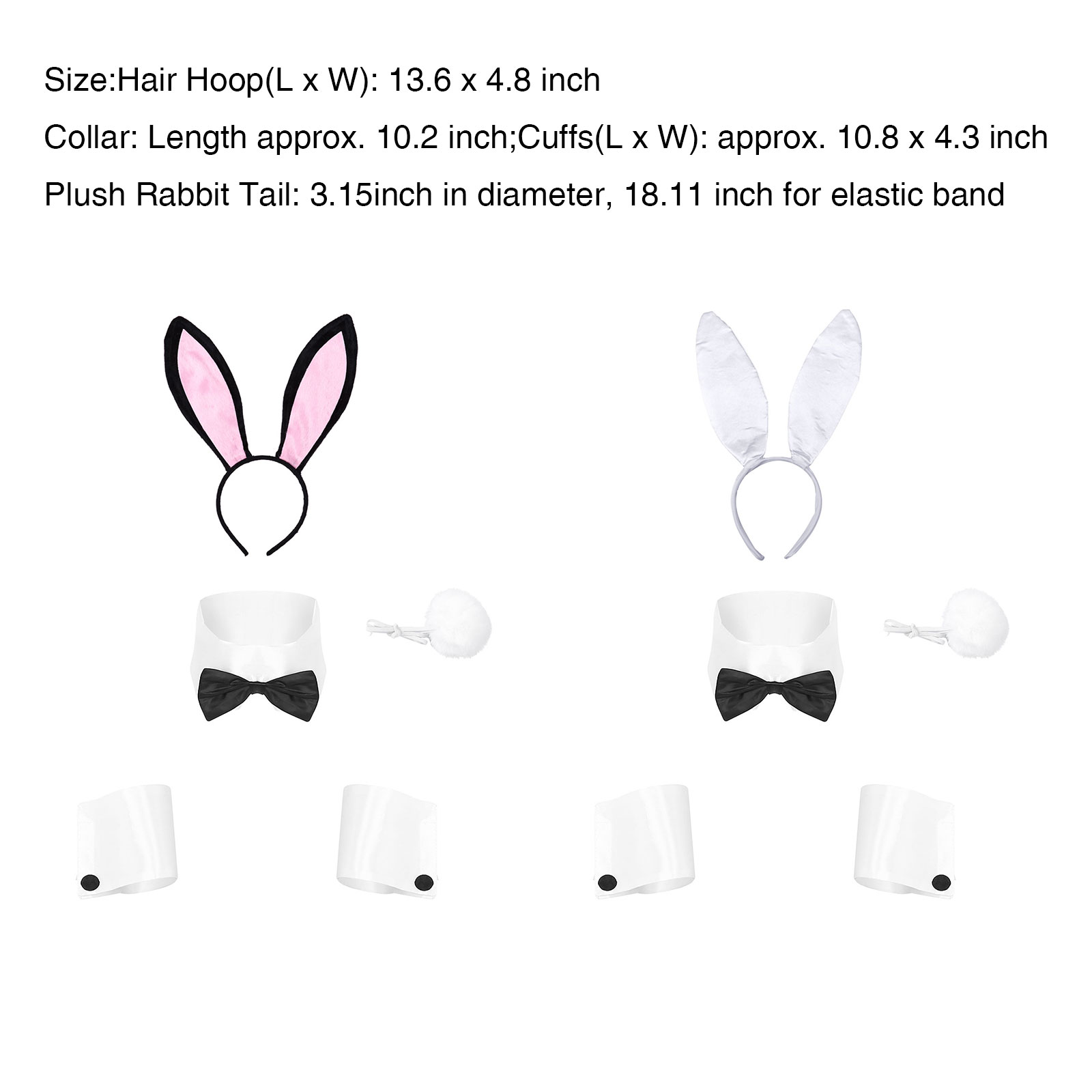 Милый обруч с кроличьими ушами для взрослых, воротник и манжеты с кроличьим хвостом или обруч для волос для костюмированной вечеринки на Хэллоуин.