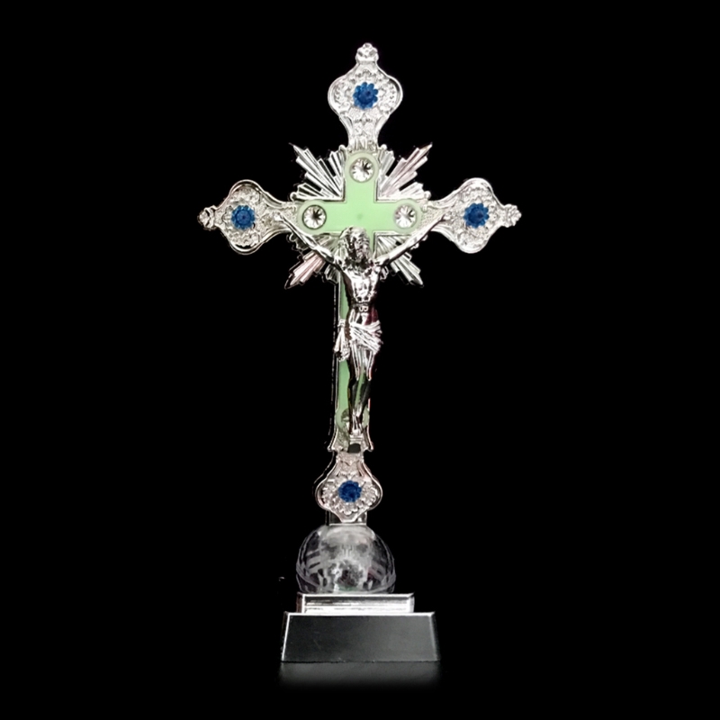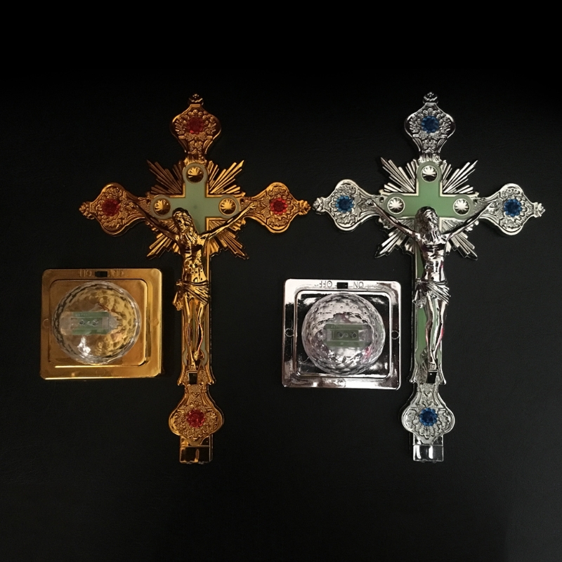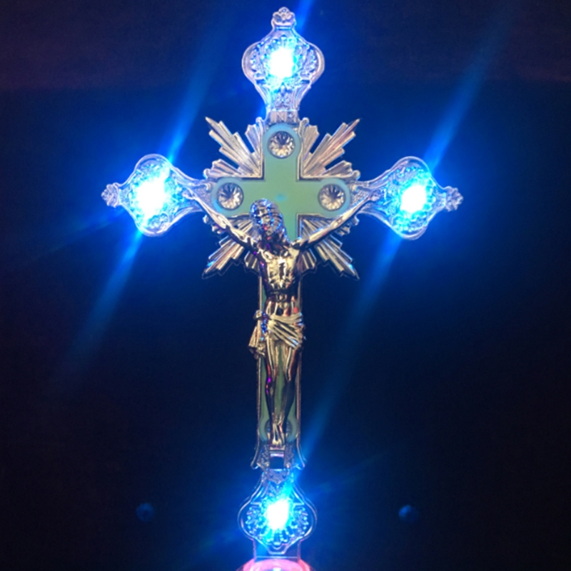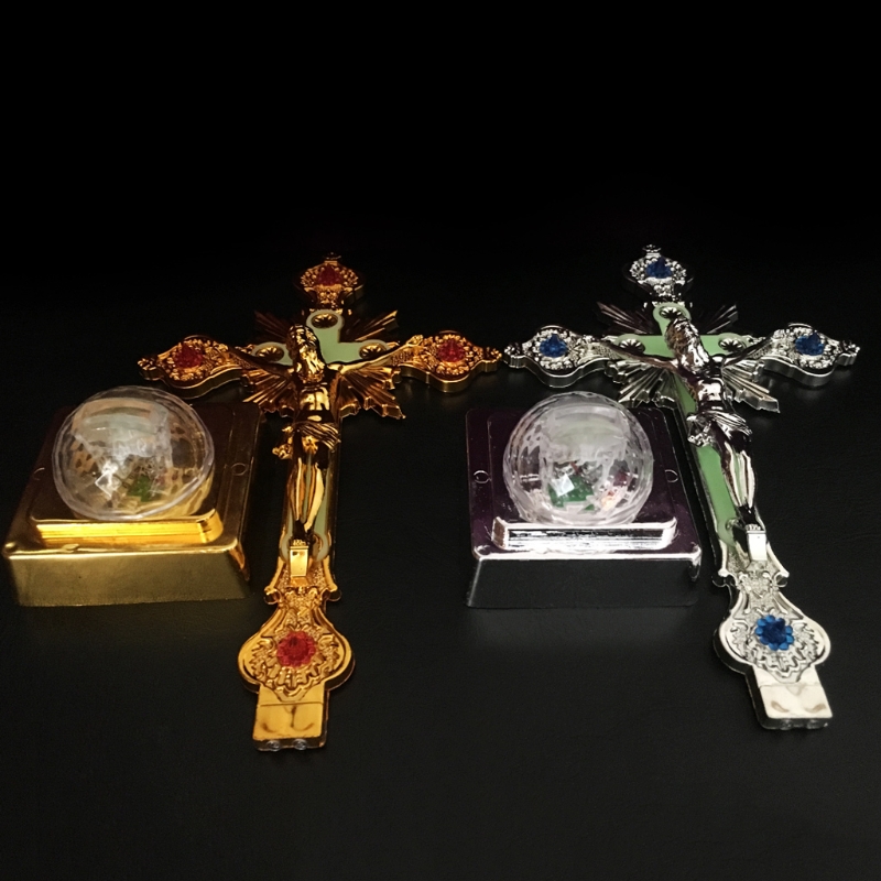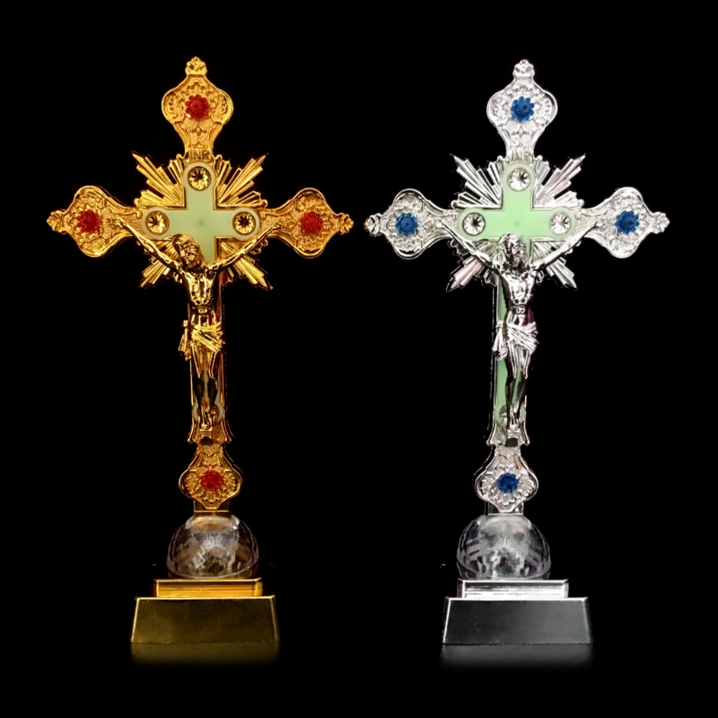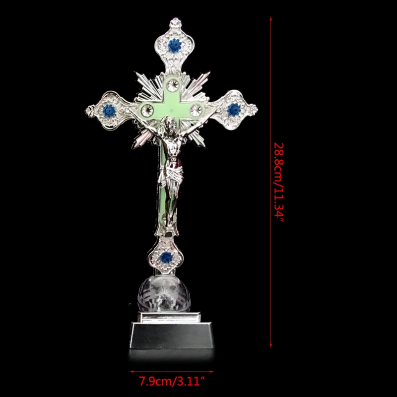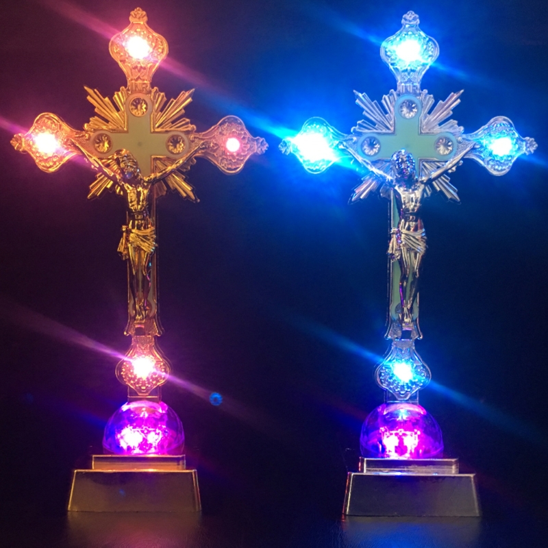 Церковные статуэтки, Ночник светильник, Распятие Иисуса Христа на подставке, лампа, крест, католическое антикварное украшение для дома