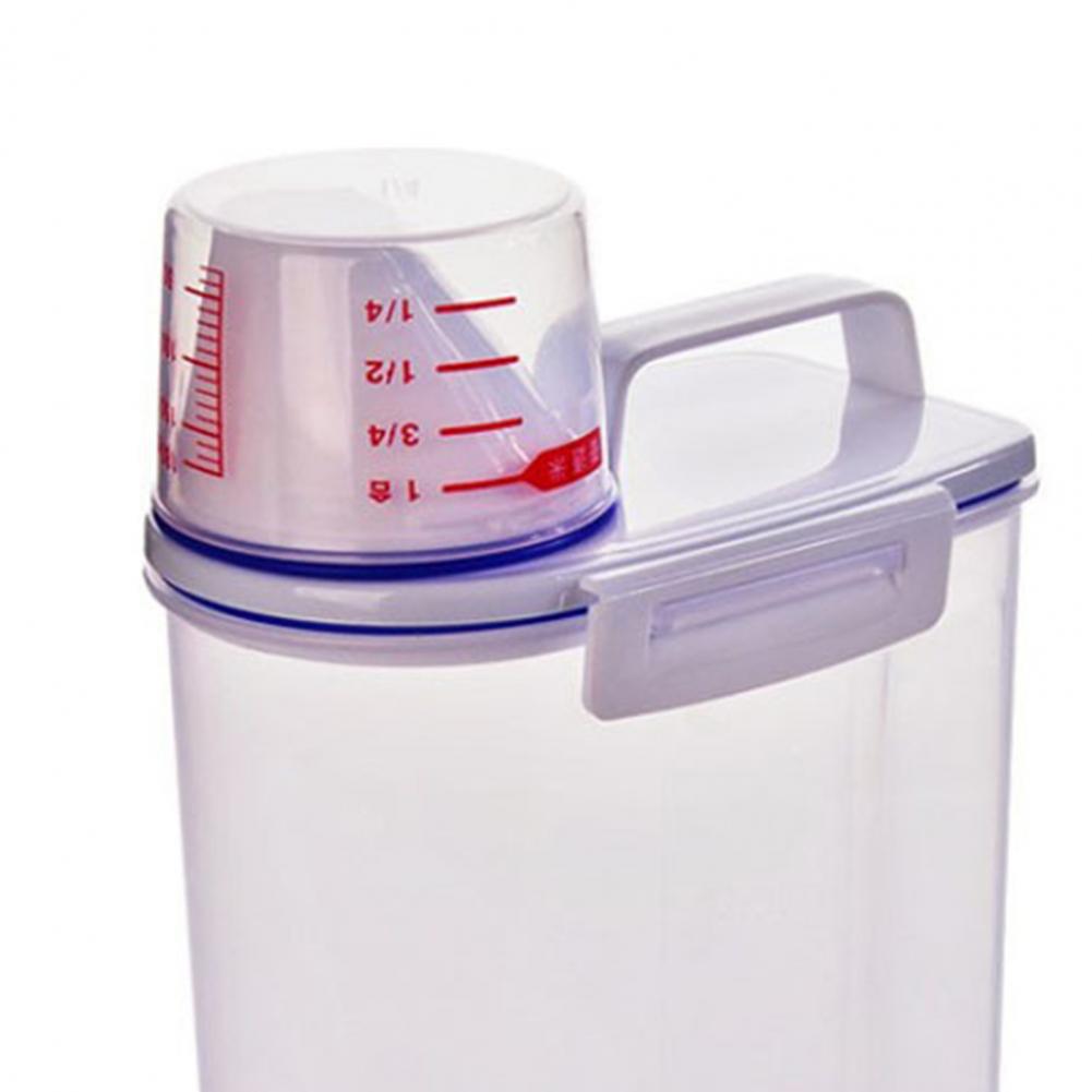 Портативное ведро для риса весом 2 кг с крышкой и мерной чашкой может держать все зерна.