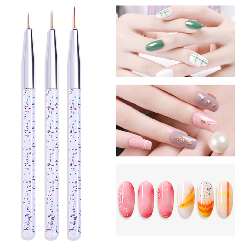 3 шт искусства ногтя ручка-лайнер для рисования набор с украшением в виде кристаллов акрилового стрежня нейлоновая щетина тонкая ручка-лайнер для рисования ногтей, маникюр, инструмент для маникюра, Вышивка крестом пакет H-best