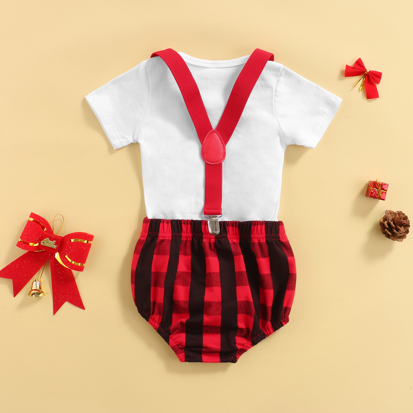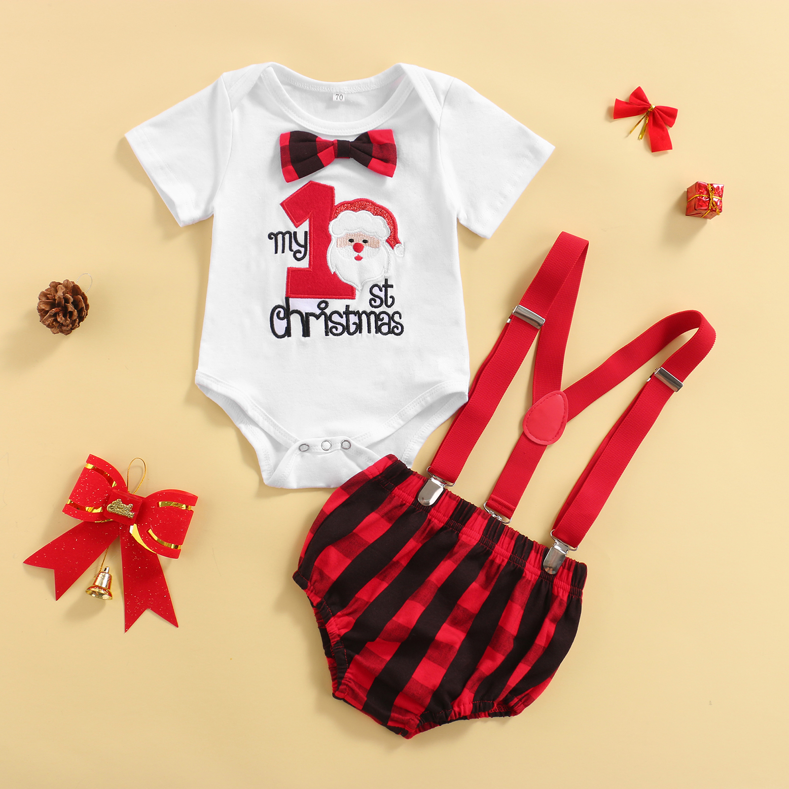 My 1st Christmas/хлопковое боди с короткими рукавами для новорожденных мальчиков, топ, сарафан в клетку, шорты-шаровары комплект рождественской одежды из 2 предметов