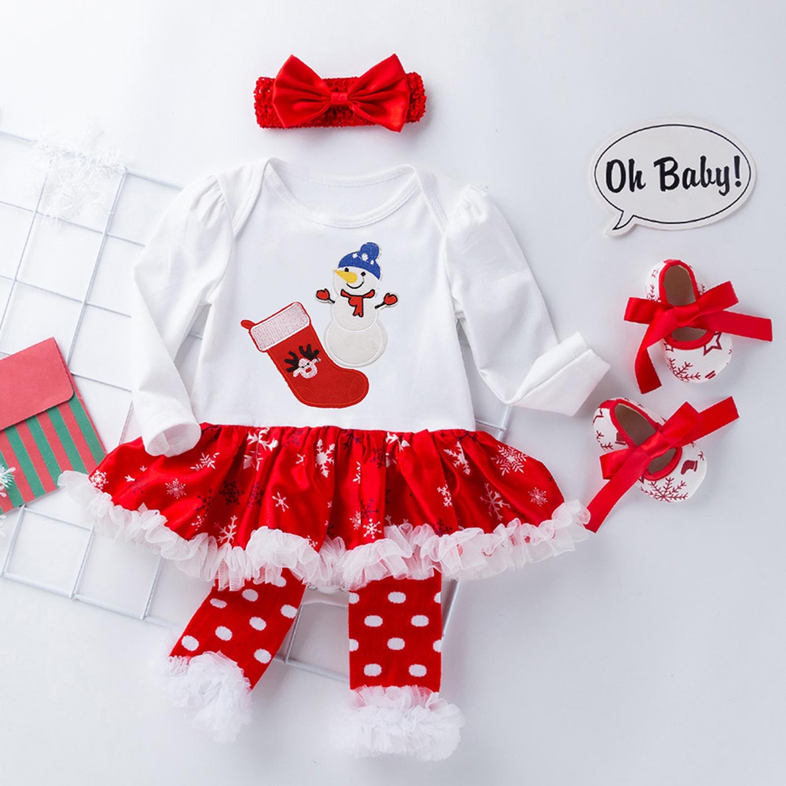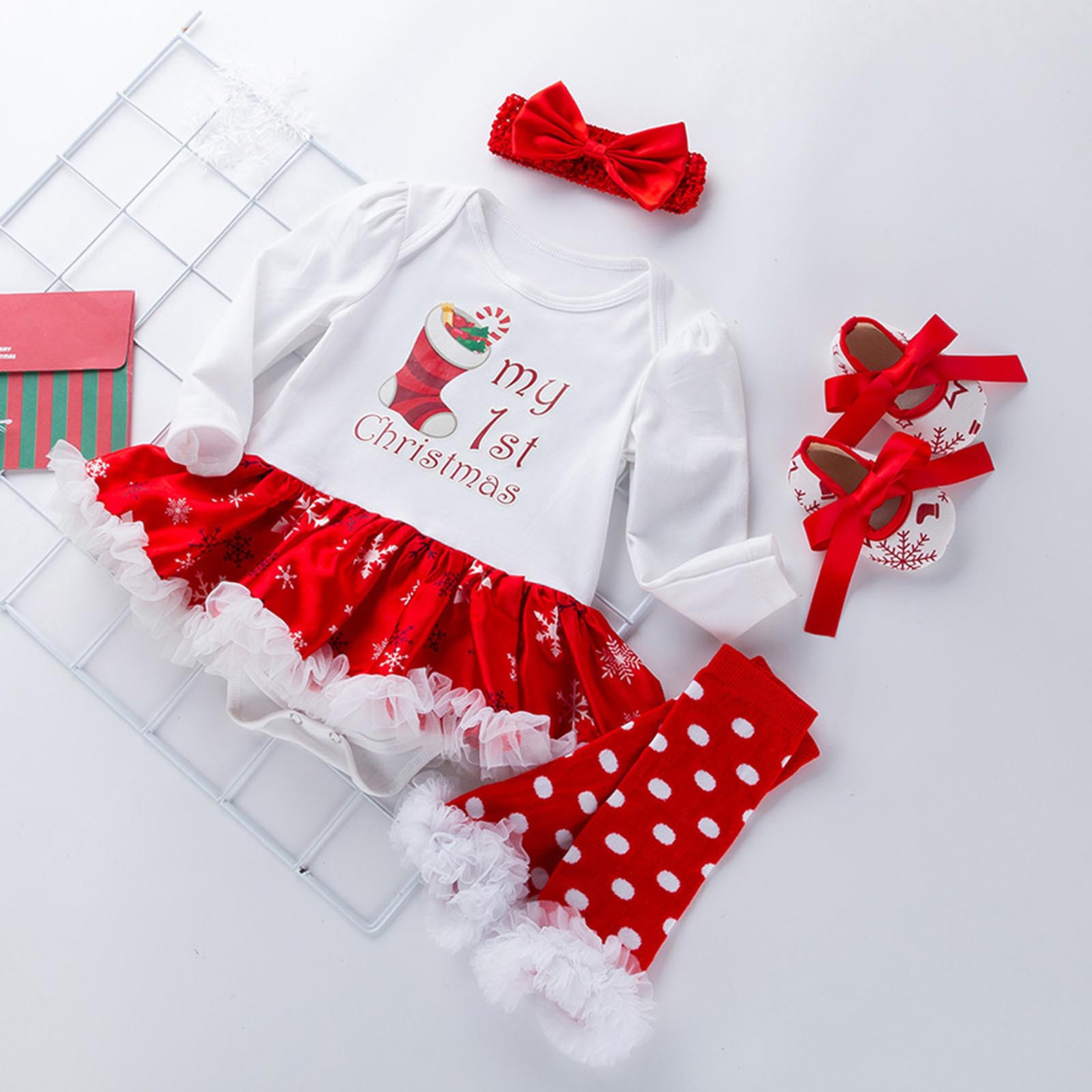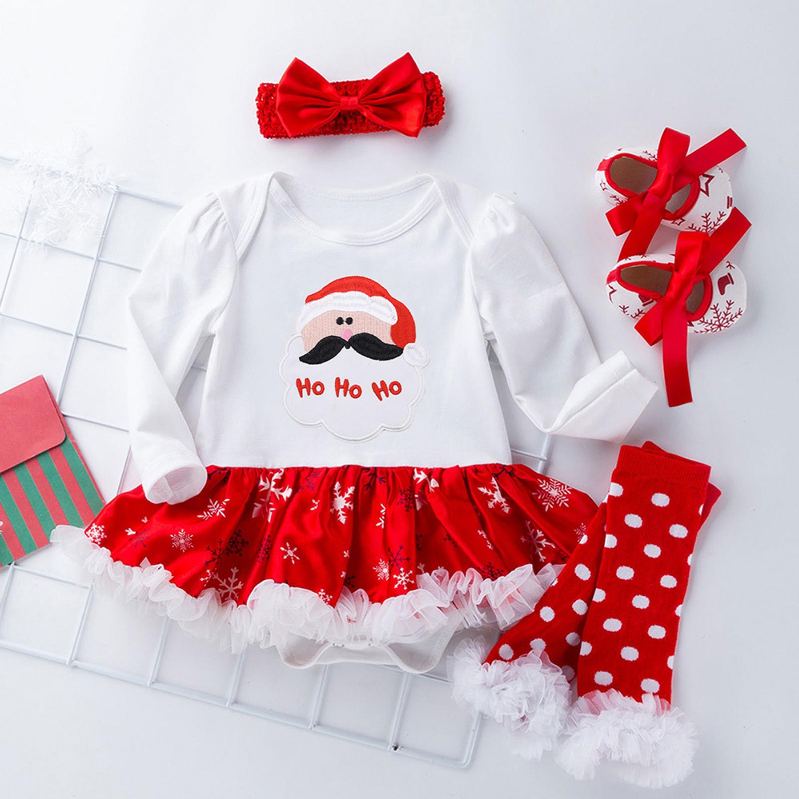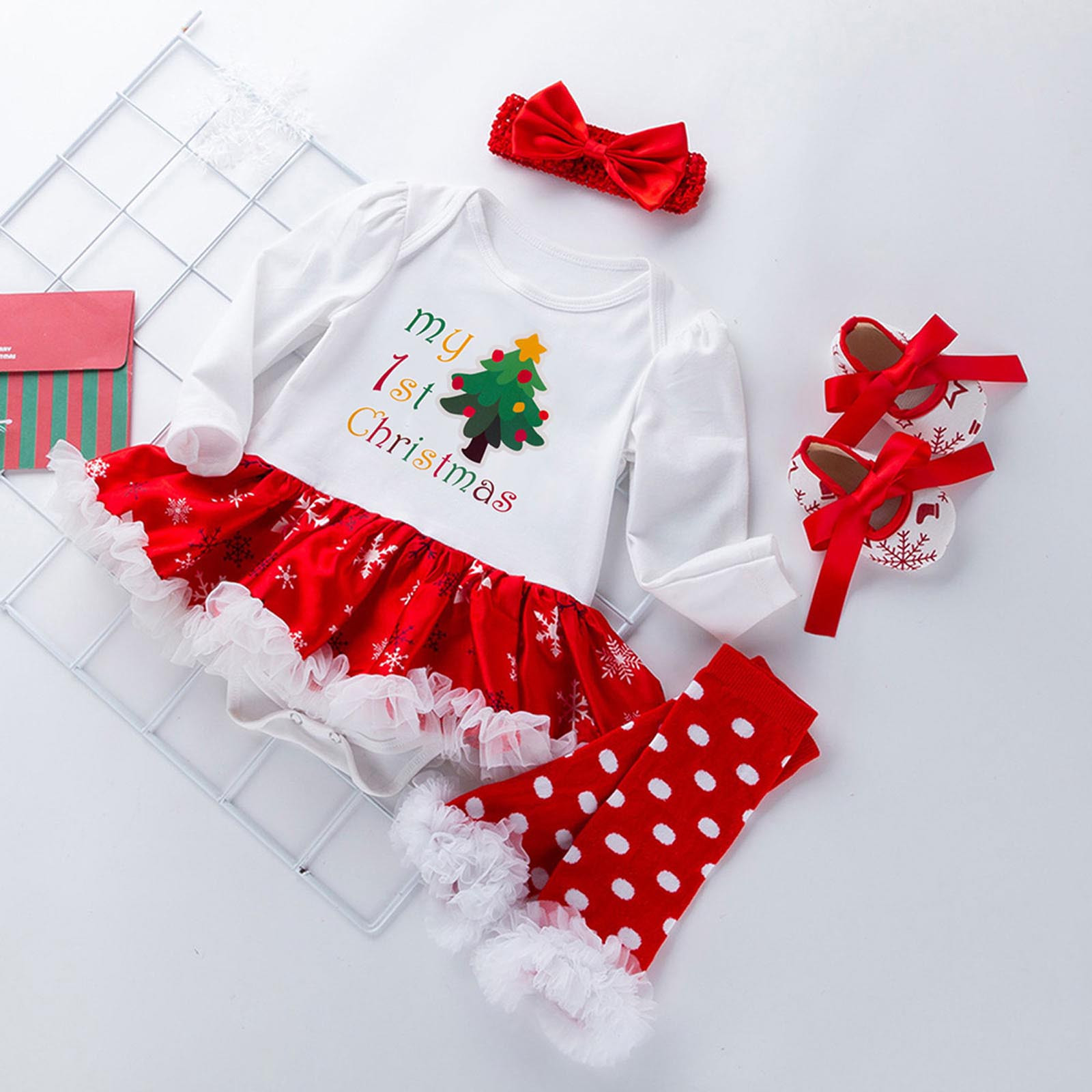 Рождественский подарок; Одежда для новорожденных; Хлопковый комбинезон с оборками для маленьких девочек; Платье с повязкой на голову; Комплект из 4 предметов