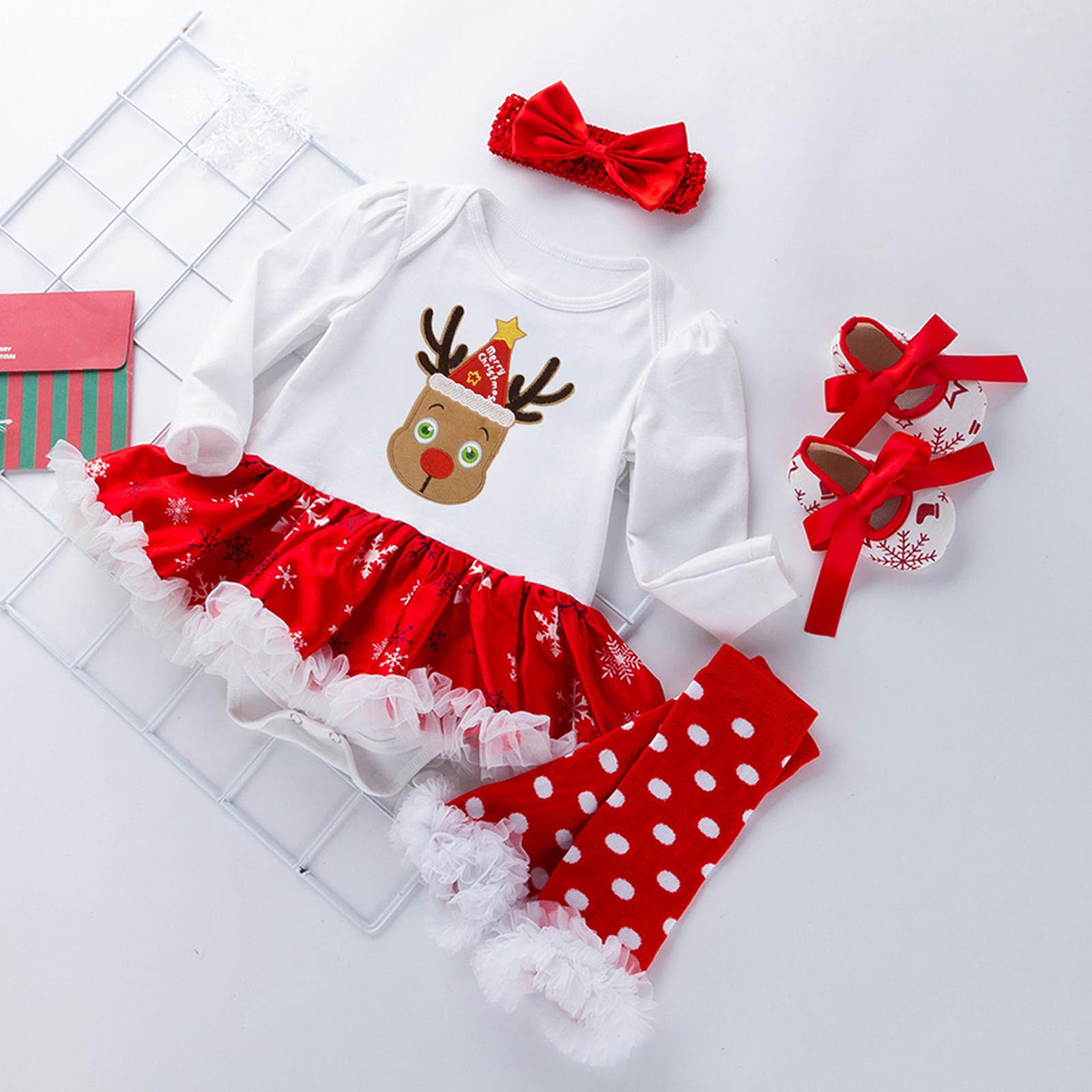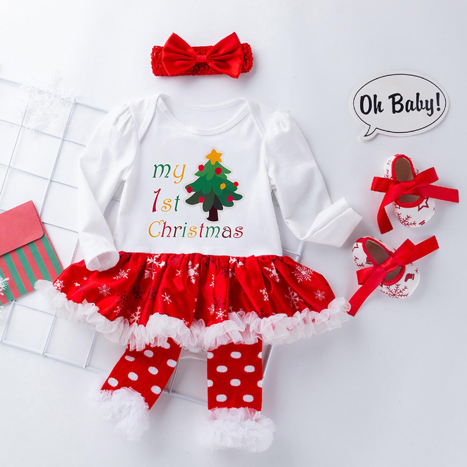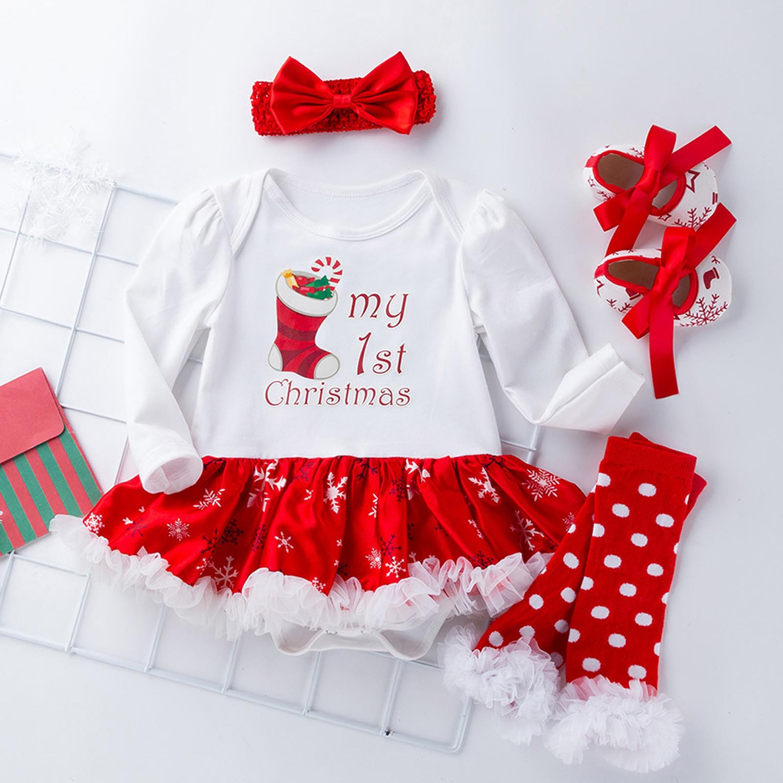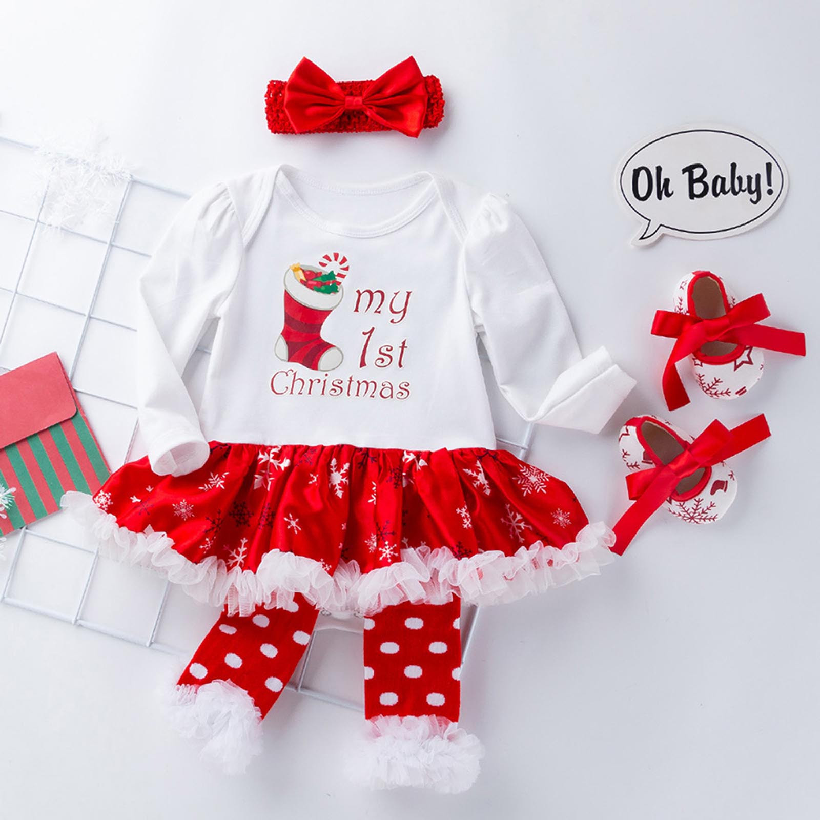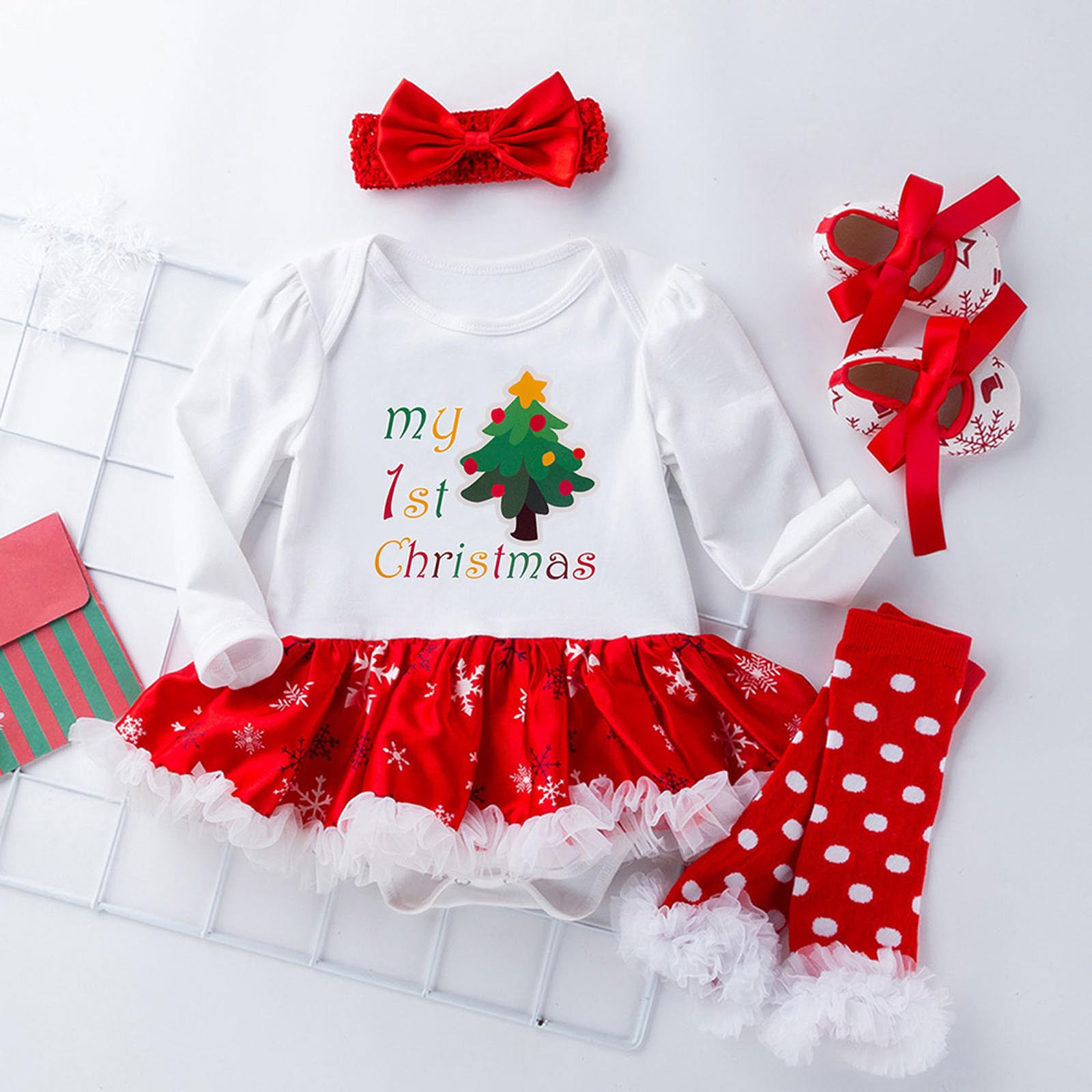 Рождественский подарок; Одежда для новорожденных; Хлопковый комбинезон с оборками для маленьких девочек; Платье с повязкой на голову; Комплект из 4 предметов