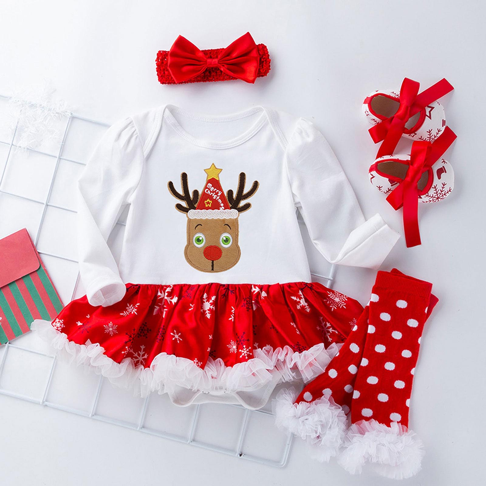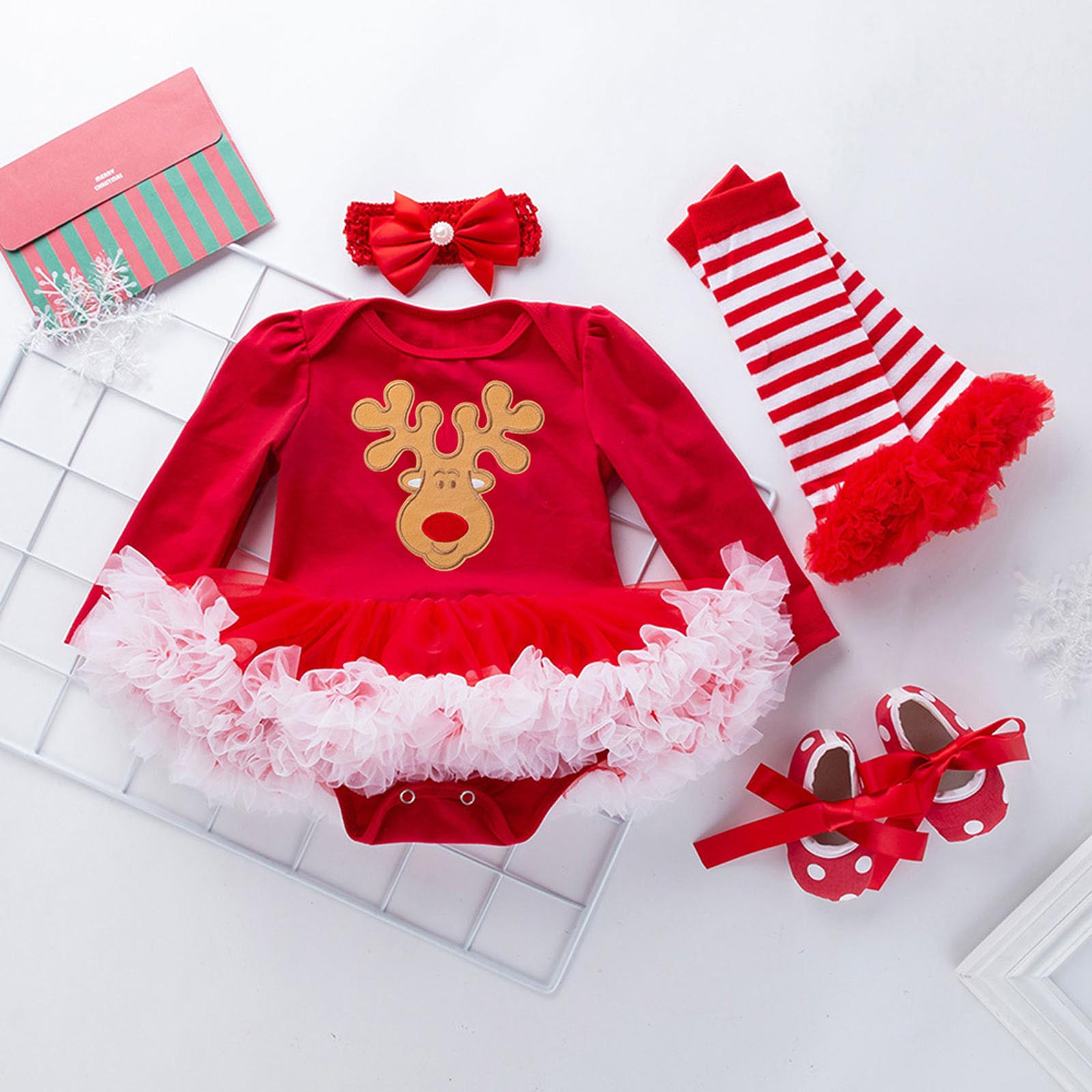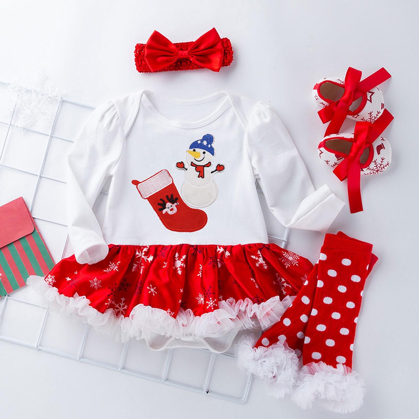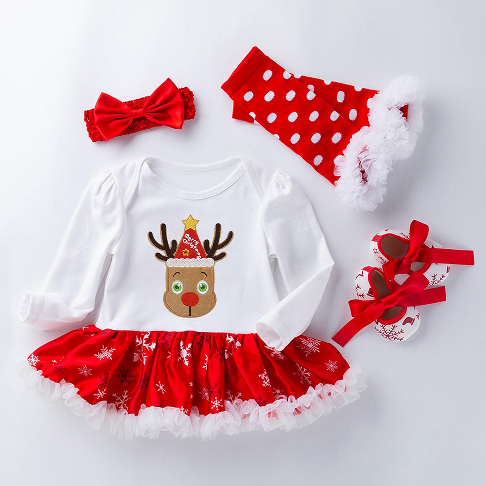 Рождественский подарок; Одежда для новорожденных; Хлопковый комбинезон с оборками для маленьких девочек; Платье с повязкой на голову; Комплект из 4 предметов