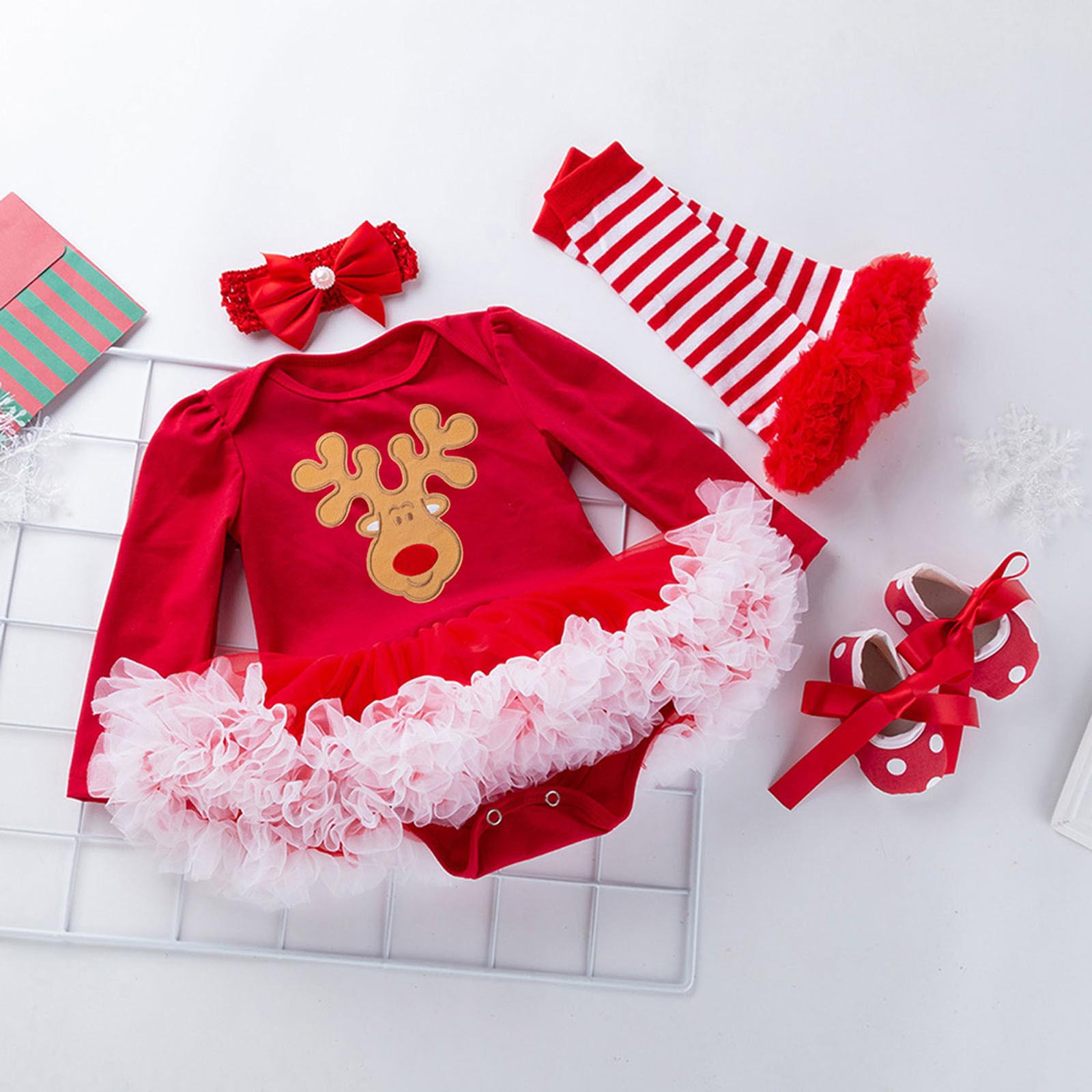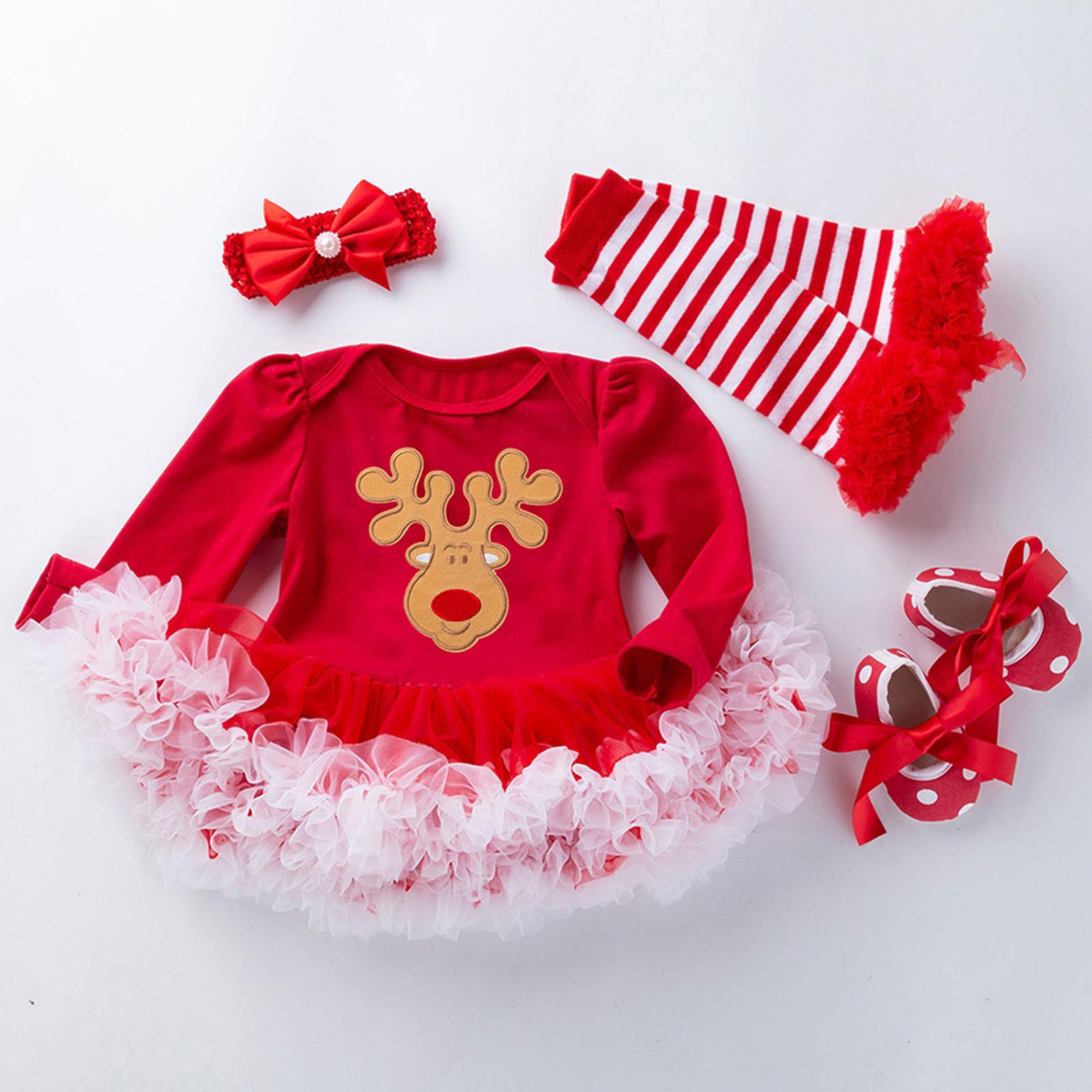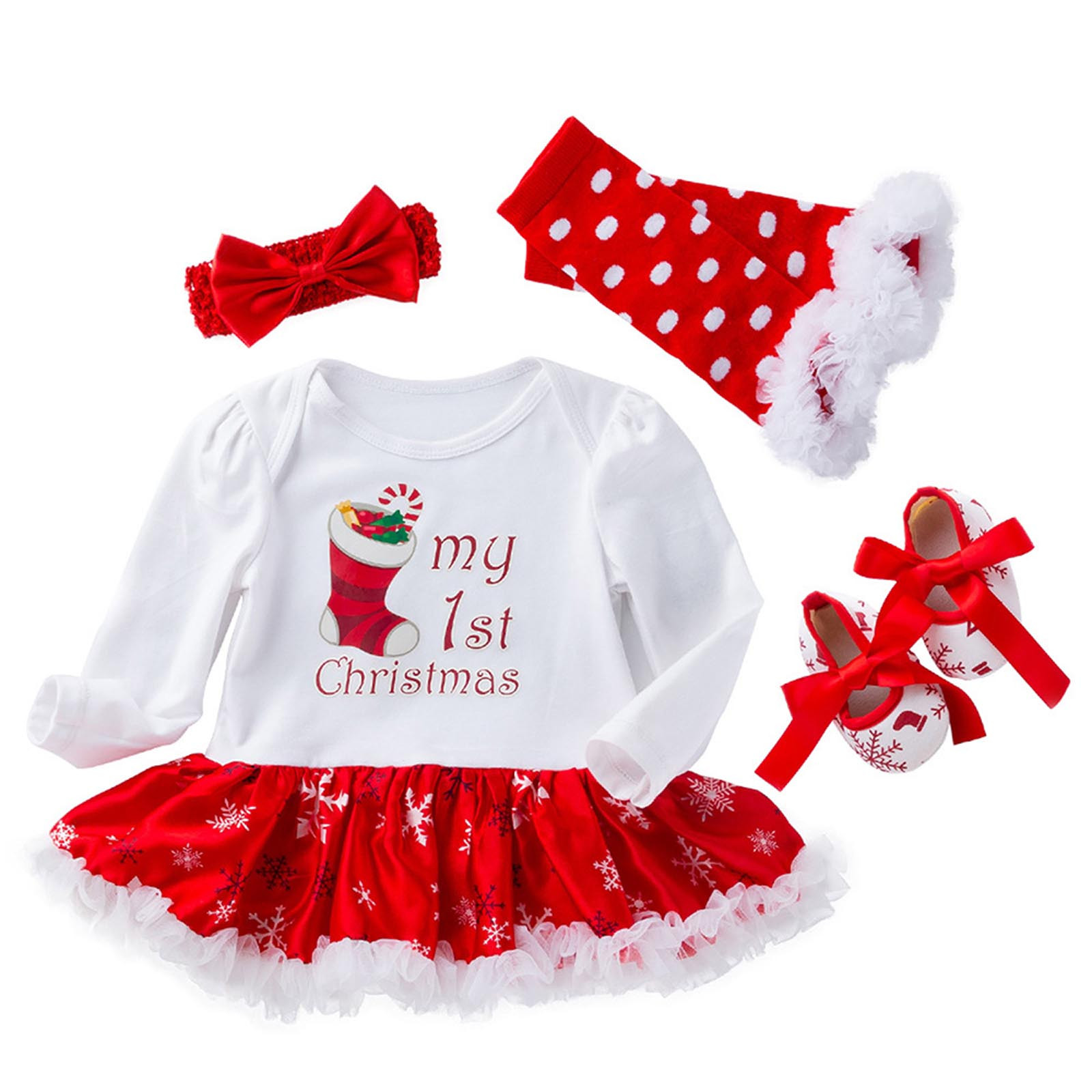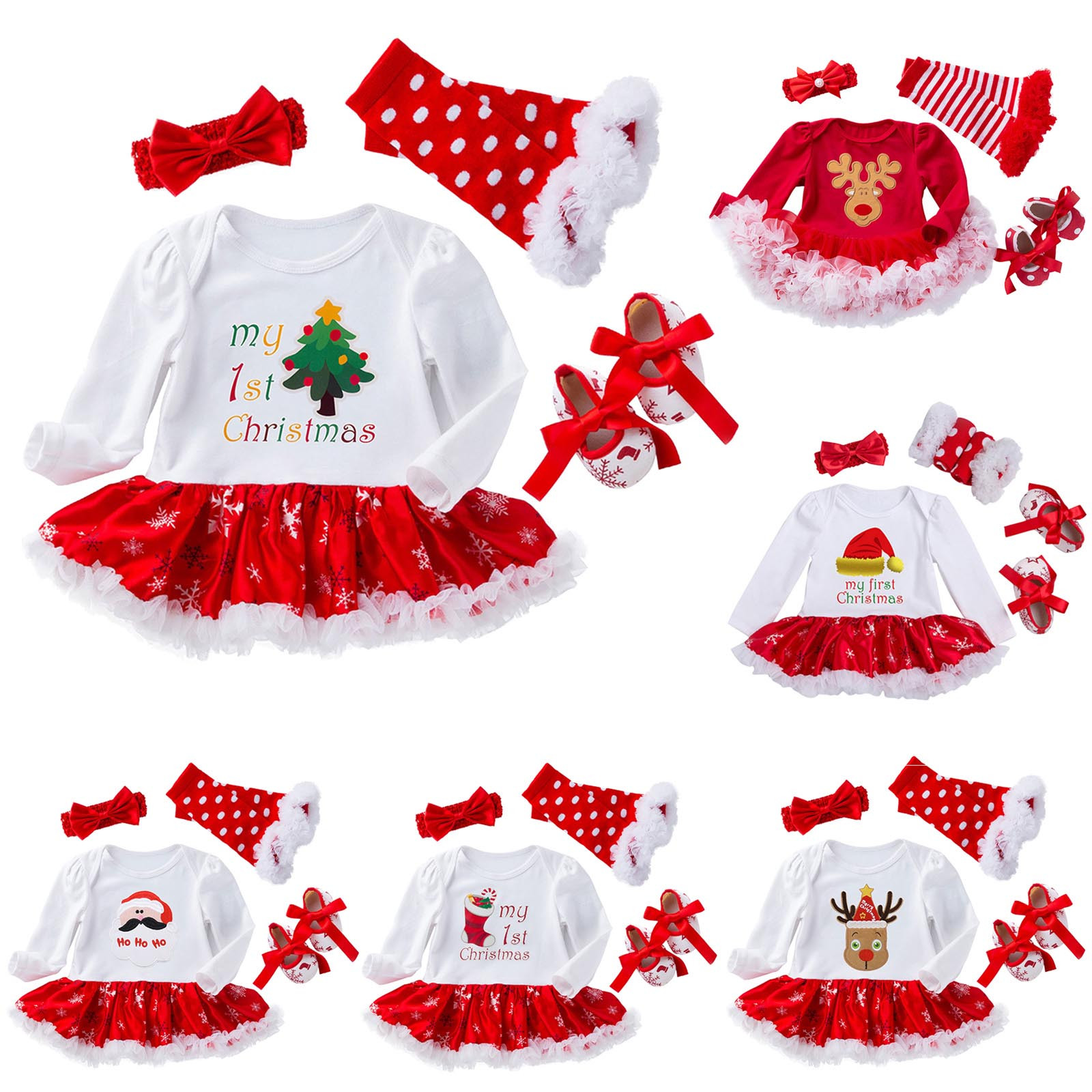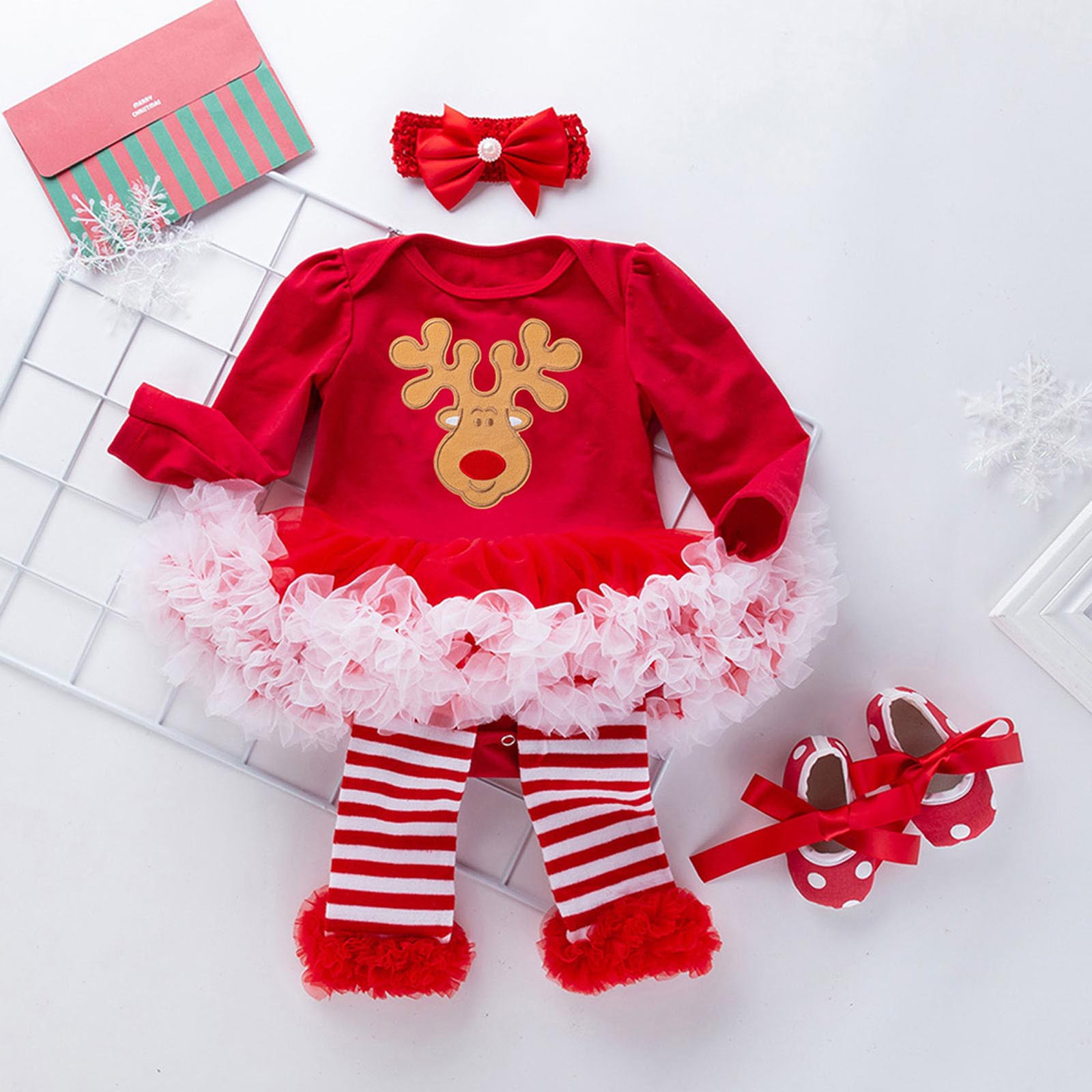 Рождественский подарок; Одежда для новорожденных; Хлопковый комбинезон с оборками для маленьких девочек; Платье с повязкой на голову; Комплект из 4 предметов